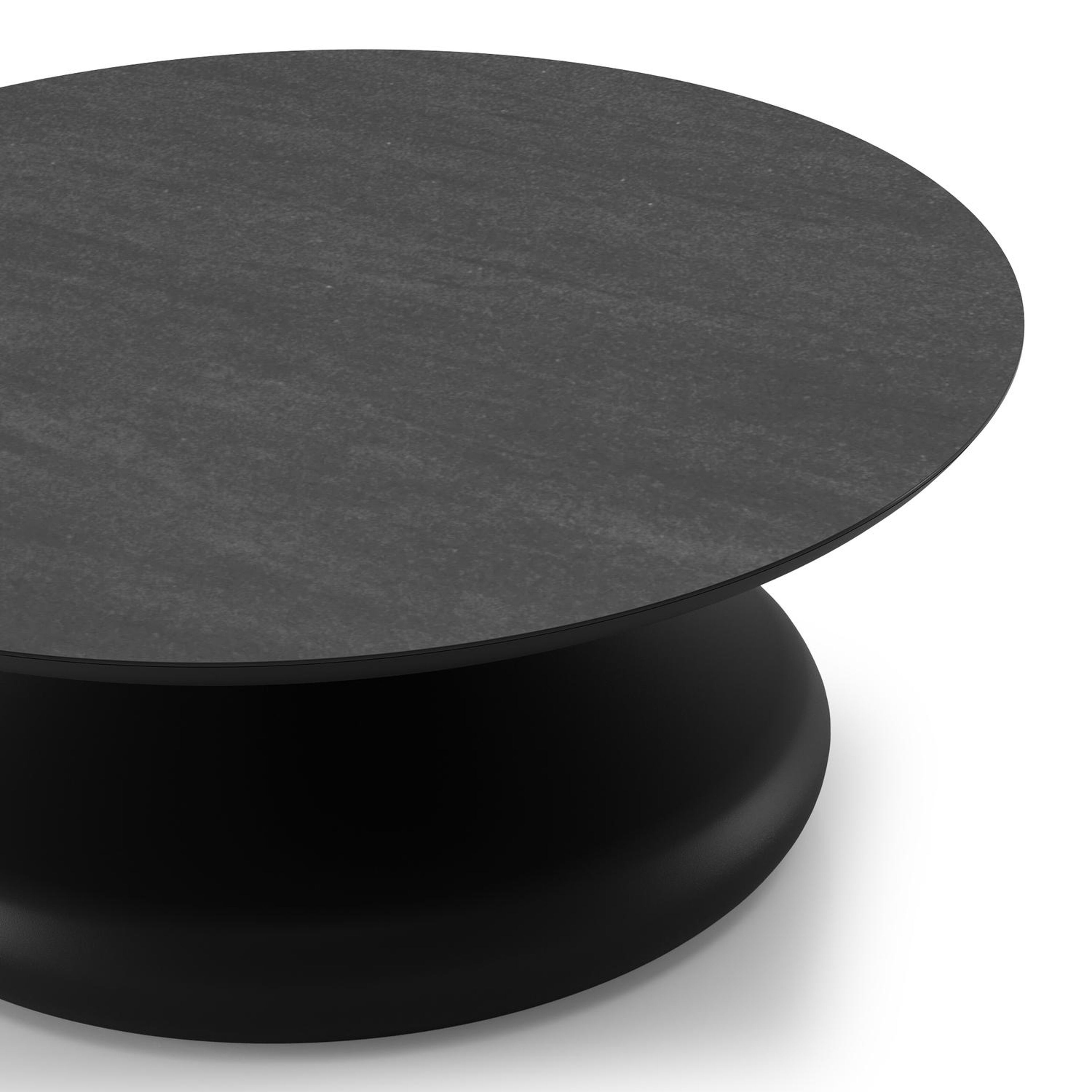 Bomero loungetafel rond in zwart aluminium en volkeramiek Basalt Black - Dia. 84 x H 32.2 cm | Exterioo tuinmeubelen