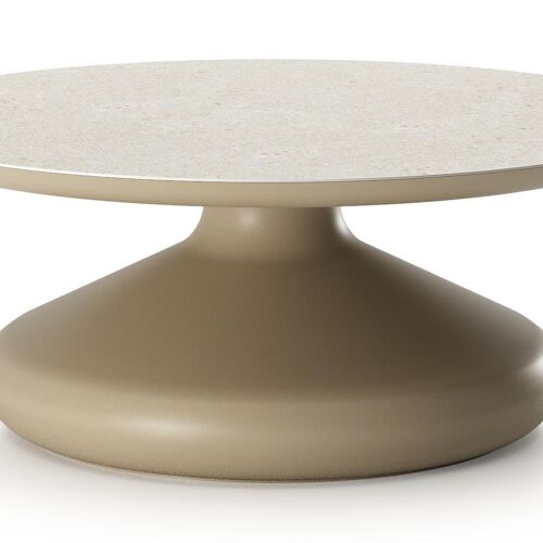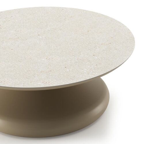 Bomero loungetafel rond in beige aluminium en volkeramiek Shilin - Dia. 84 x H 32.2 cm | Exterioo