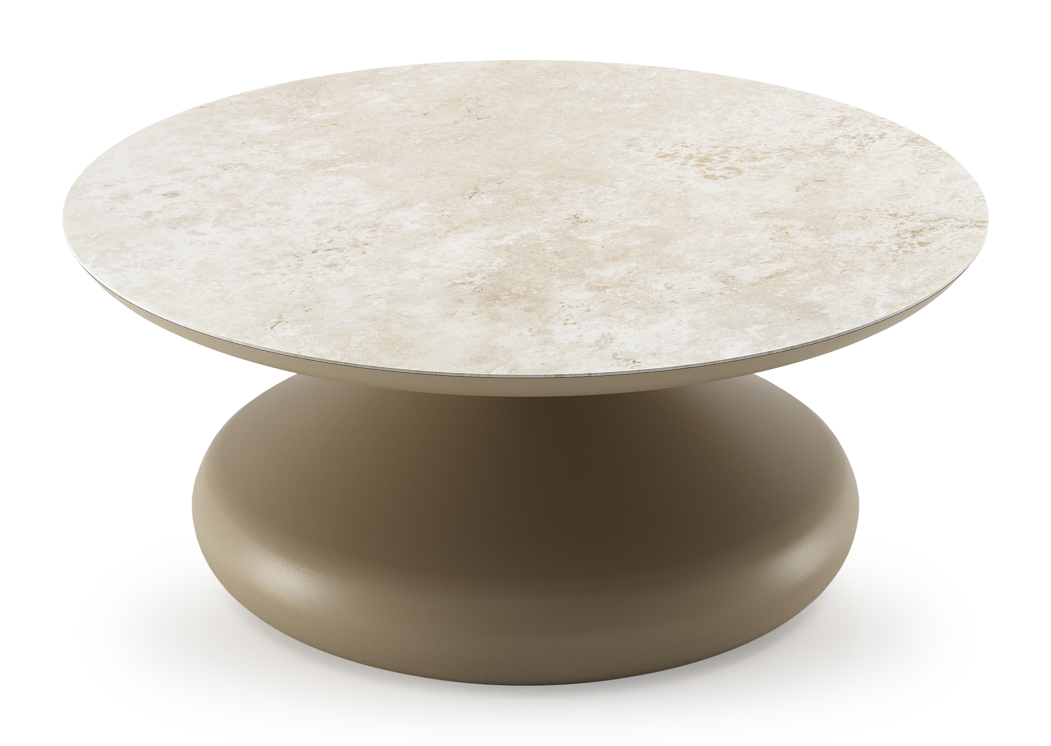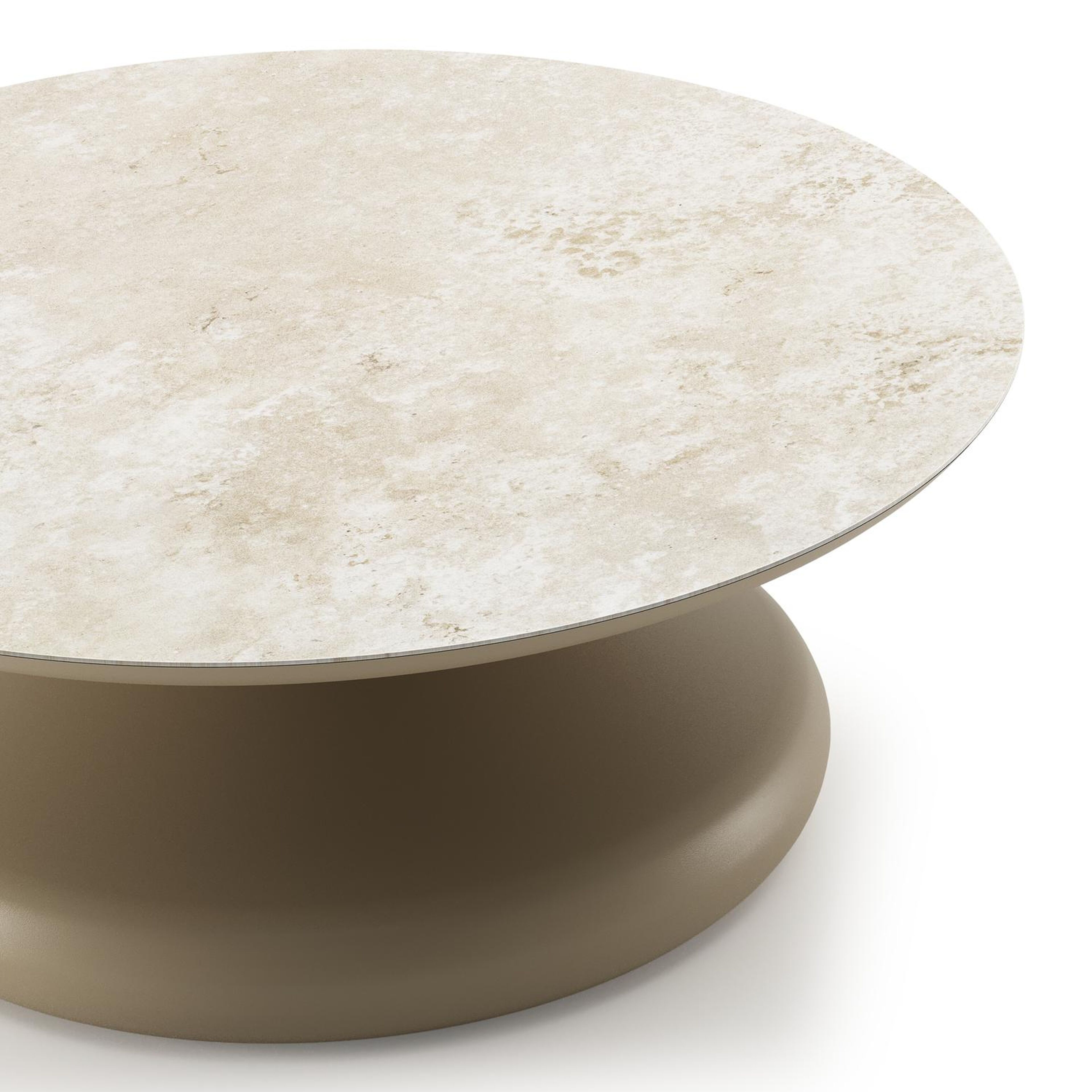 Bomero loungetafel rond in beige aluminium en volkeramiek Rapolano - Dia. 84 x H 32.2 cm | Exterioo tuinmeubelen