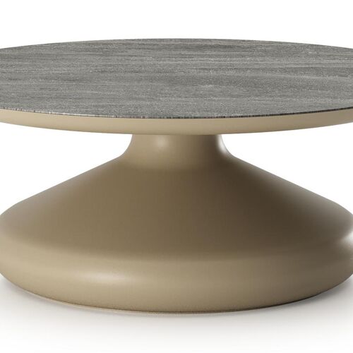 Bomero loungetafel rond in beige aluminium en volkeramiek Aspen Grey - Dia. 84 x H 32.2 cm | Exterioo