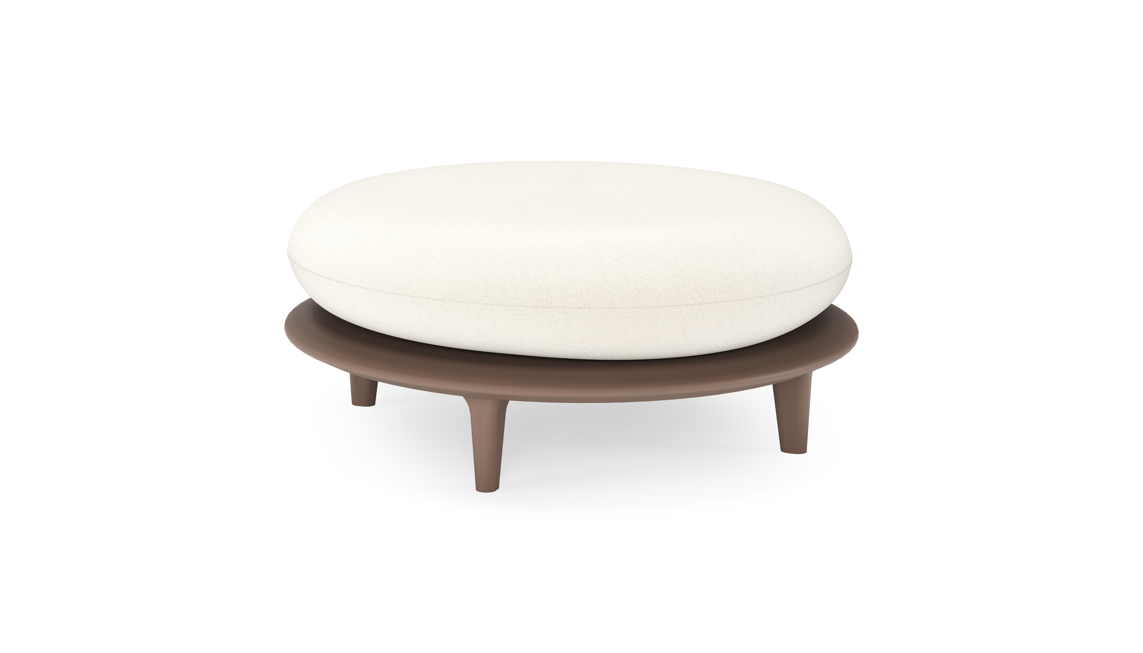 Bomero poef in taupe aluminium met natte white all weather sunbrella® luxe kussen | Exterioo tuinmeubelen