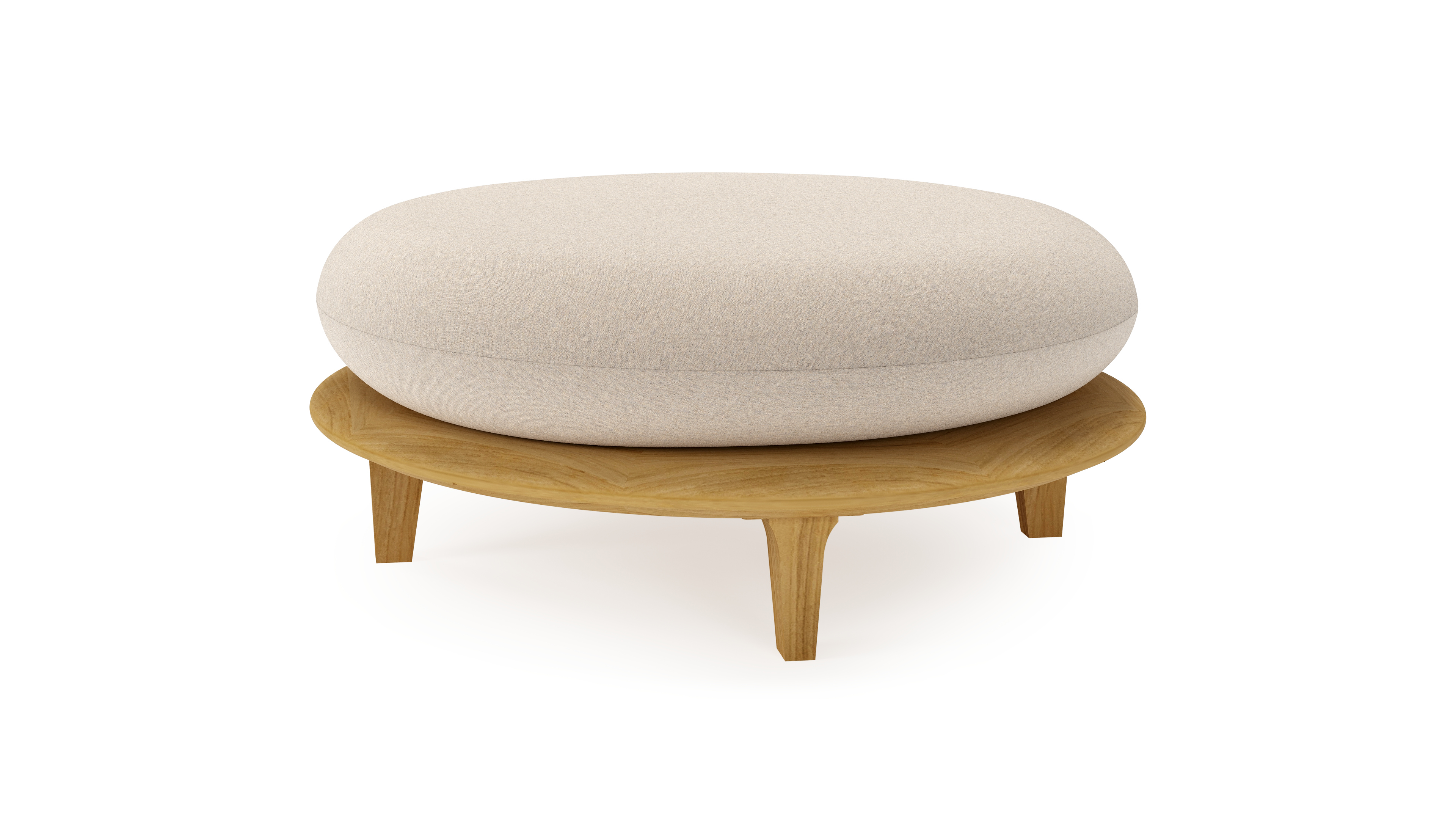 Bomero poef in teak met heritage ash all weather sunbrella® luxe kussen | Exterioo tuinmeubelen