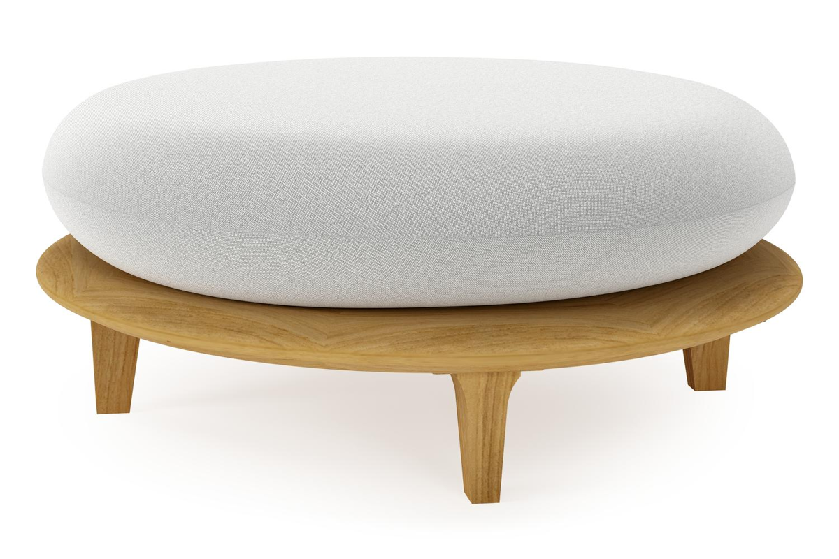 Bomero poef in teak met natte grey chine all weather sunbrella® luxe kussen | Exterioo