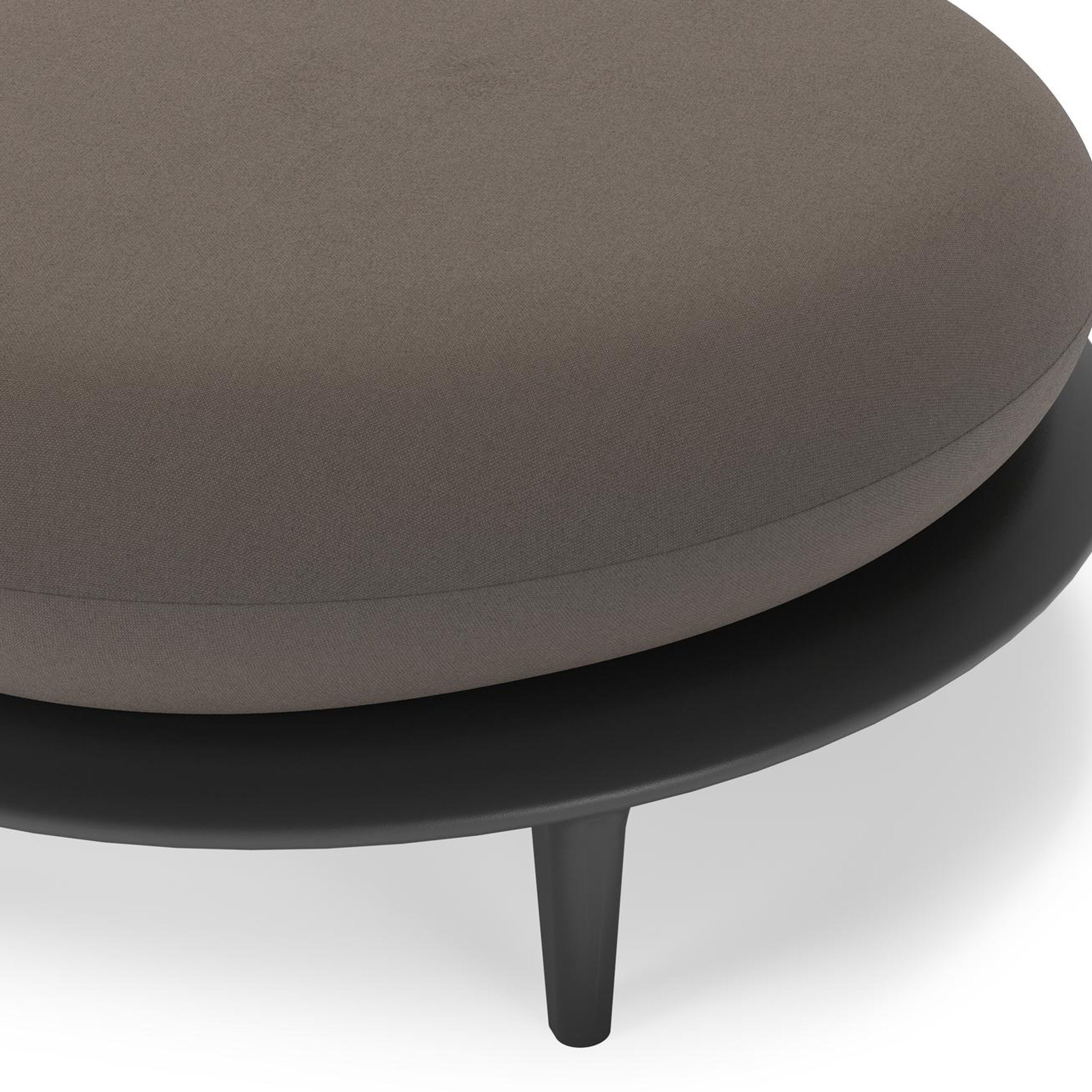Bomero poef in zwart aluminium met natte nature grey all weather sunbrella® luxe kussen | Exterioo tuinmeubelen