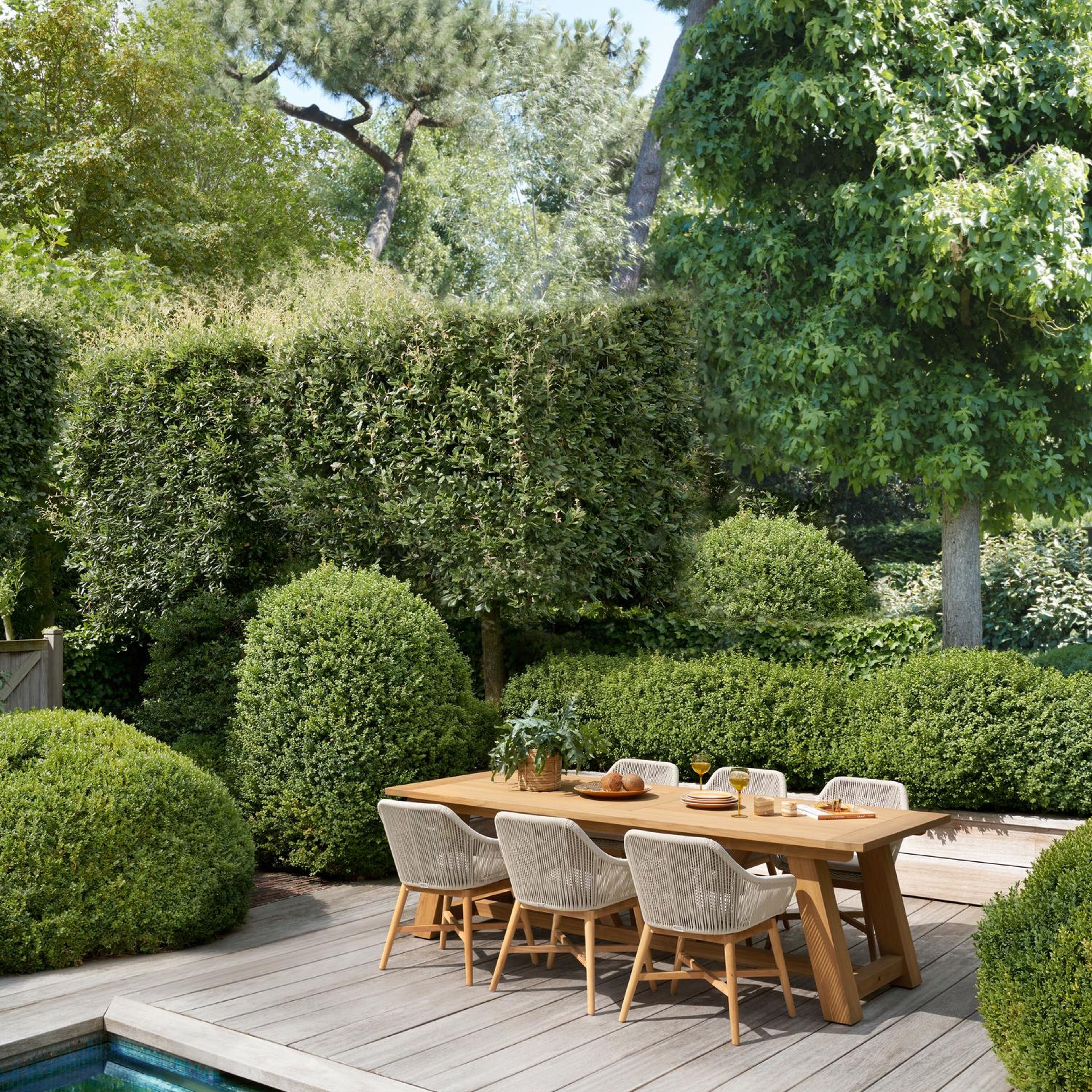 Een tuinstoel uit teak staat gelijk aan bijzondere kwaliteit en natuurlijk design. Teak is een kwalitatieve houtsoort gekenmerkt door zijn hardheid. Aangezien hout leeft, kan de structuur of kleur licht anders zijn dan op het beeld weergegeven.