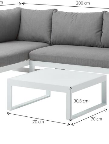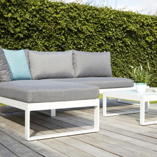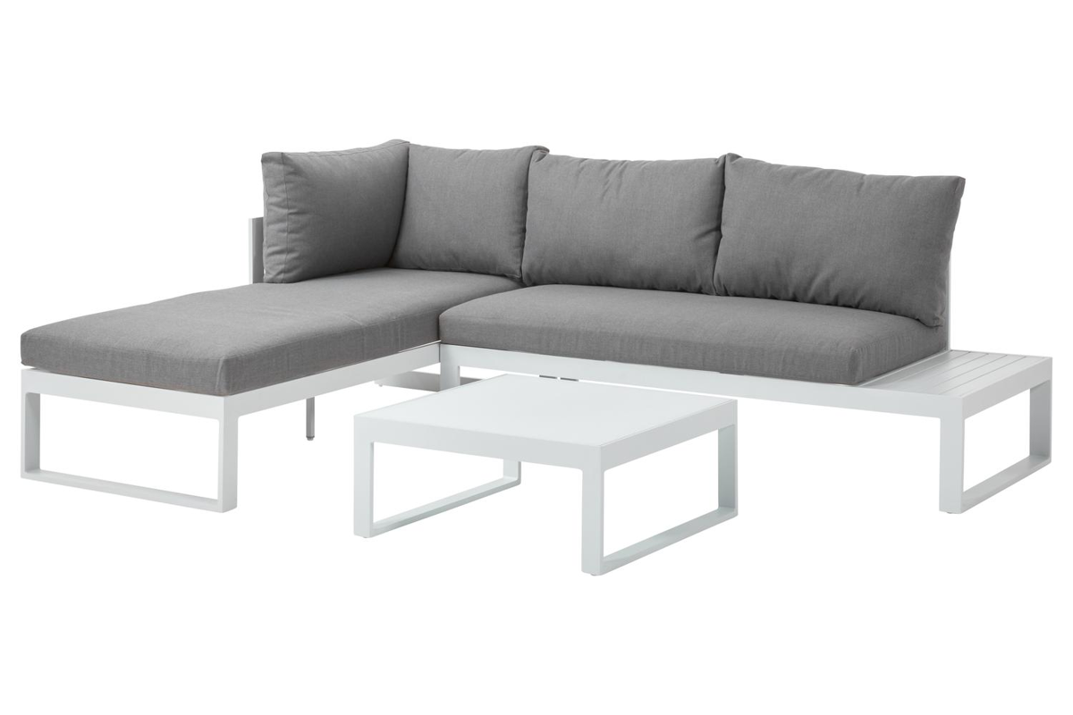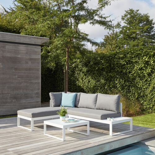 Caldela loungehoek in wit aluminium met grijs polyester kussens en loungetafel | Exterioo