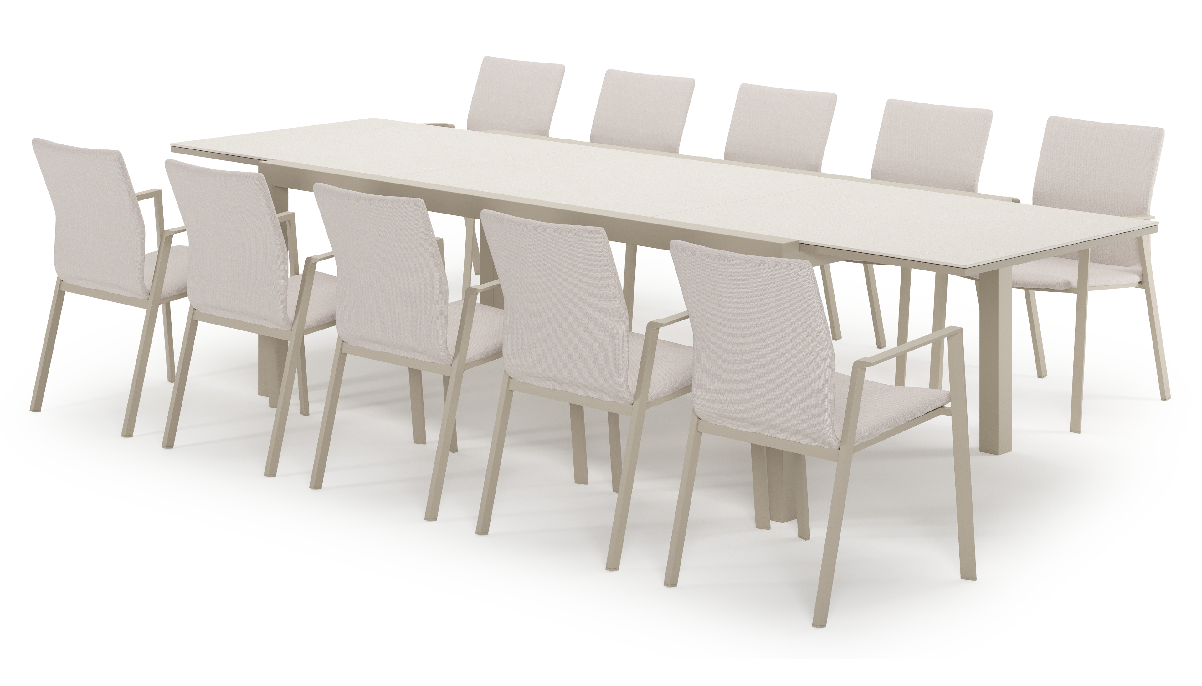 De Calobra tuinset is perfect voor een groot gezelschap en heeft een robuuste look. De tuinset is verlengbaar en kan je makkelijk uitschuiven door middel van het tilt-up systeem, een systeem dat het verlengstuk in de tuinset laat verdwijnen. Het frame van de tuintafel is gemaakt uit roestvrij aluminium, een sterk, maar toch licht materiaal dat makkelijk verplaatsbaar is. Het oppervlak is glad afgewerkt waardoor het geen vuil aantrekt en onderhoudsvriendelijk is. De poedercoating zorgt voor de UV- en weerbestendigheid van je meubel. Een sintered stone tafelblad bevat verschillende soorten mineralen die op een nog hogere druk worden gebakken dan keramiek, maar toch dezelfde eigenschappen heeft. Het materiaal is uiterst stevig. Het is vorst-, hitte- en krasbestendig en eenvoudig schoon te maken.