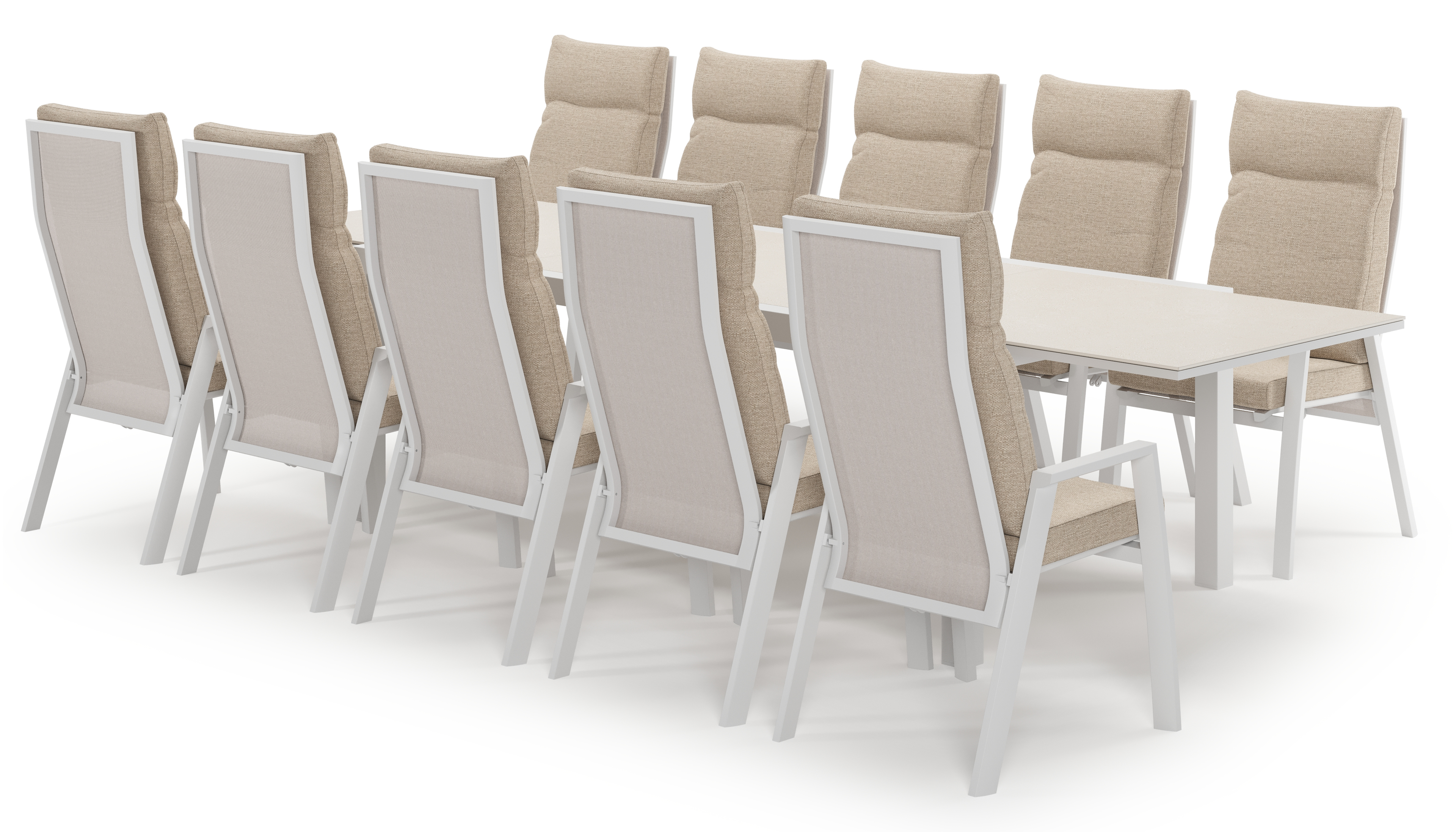 De Calobra tuinset is perfect voor een groot gezelschap en heeft een robuuste look. De tuinset is verlengbaar en kan je makkelijk uitschuiven door middel van het tilt-up systeem, een systeem dat het verlengstuk in de tuinset laat verdwijnen. Het frame van de tuintafel is gemaakt uit roestvrij aluminium, een sterk, maar toch licht materiaal dat makkelijk verplaatsbaar is. Het oppervlak is glad afgewerkt waardoor het geen vuil aantrekt en onderhoudsvriendelijk is. De poedercoating zorgt voor de UV- en weerbestendigheid van je meubel. Een sintered stone tafelblad bevat verschillende soorten mineralen die op een nog hogere druk worden gebakken dan keramiek, maar toch dezelfde eigenschappen heeft. Het materiaal is uiterst stevig. Het is vorst-, hitte- en krasbestendig en eenvoudig schoon te maken.