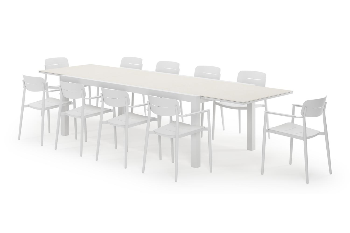 Calobra rechthoekige uitschuifbare tuinset in wit aluminium en sintered stone crema minerale met 10 Cosa tuinstoelen | Exterioo