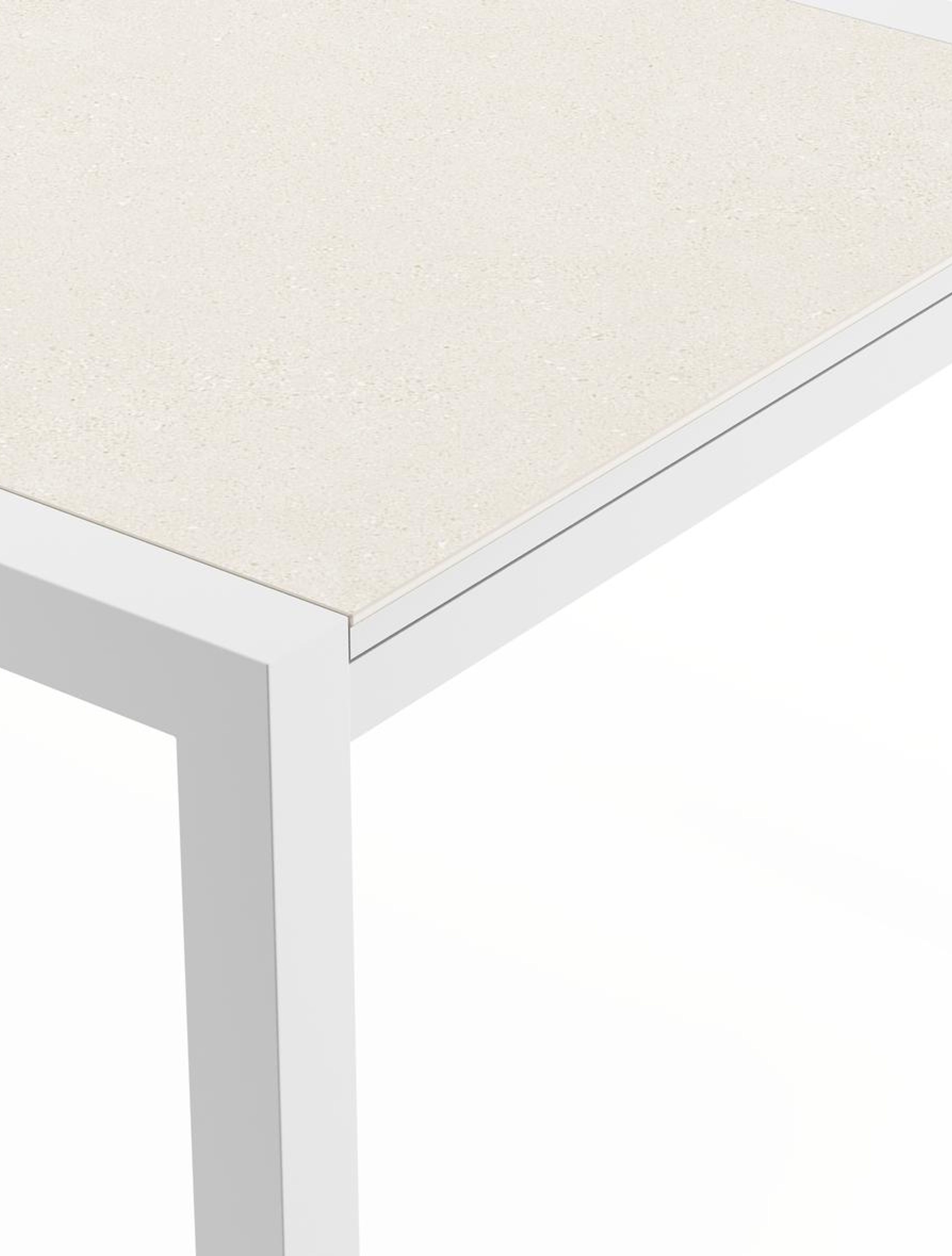 Het frame van de tafel is gemaakt uit roestvrij aluminium, een sterk, maar toch licht materiaal dat makkelijk verplaatsbaar is. Het oppervlak is glad afgewerkt waardoor het geen vuil aantrekt en onderhoudsvriendelijk is. De poedercoating zorgt voor de UV- en weerbestendigheid van je meubel.