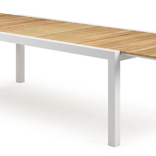 Deze Calobra tuintafel behoort tot de Bristol Essentials collectie. Het frame van de tafel bestaat uit aluminium, een licht en roestvrij materiaal. Het tafelblad van deze tafel is gemaakt van teak. Teak is een kwalitatieve houtsoort en is resistent tegen verschillende weersinvloeden. De goudbruine teak kleur zorgt voor een warme, natuurlijke uitstraling. De afmetingen van de tafel zijn L 220 x B 107 x H 75 cm. Met deze Calobra tuintafel beleef je onschatbare momenten voor een betaalbare prijs.