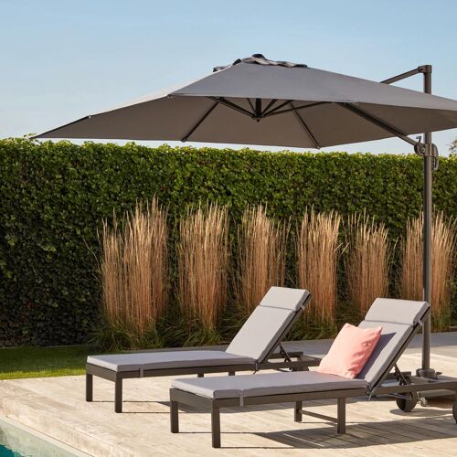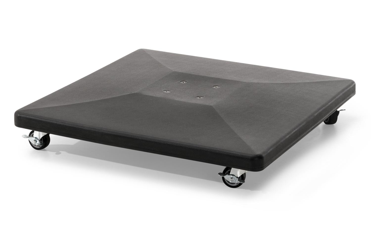 Parasolvoet in beton en kunststof. Kleur: zwart. Gewicht: 70 kg. Afmeting: L 80 x B 80 x H 10,5 cm. Enkel geschikt voor Calpe zweefparasols