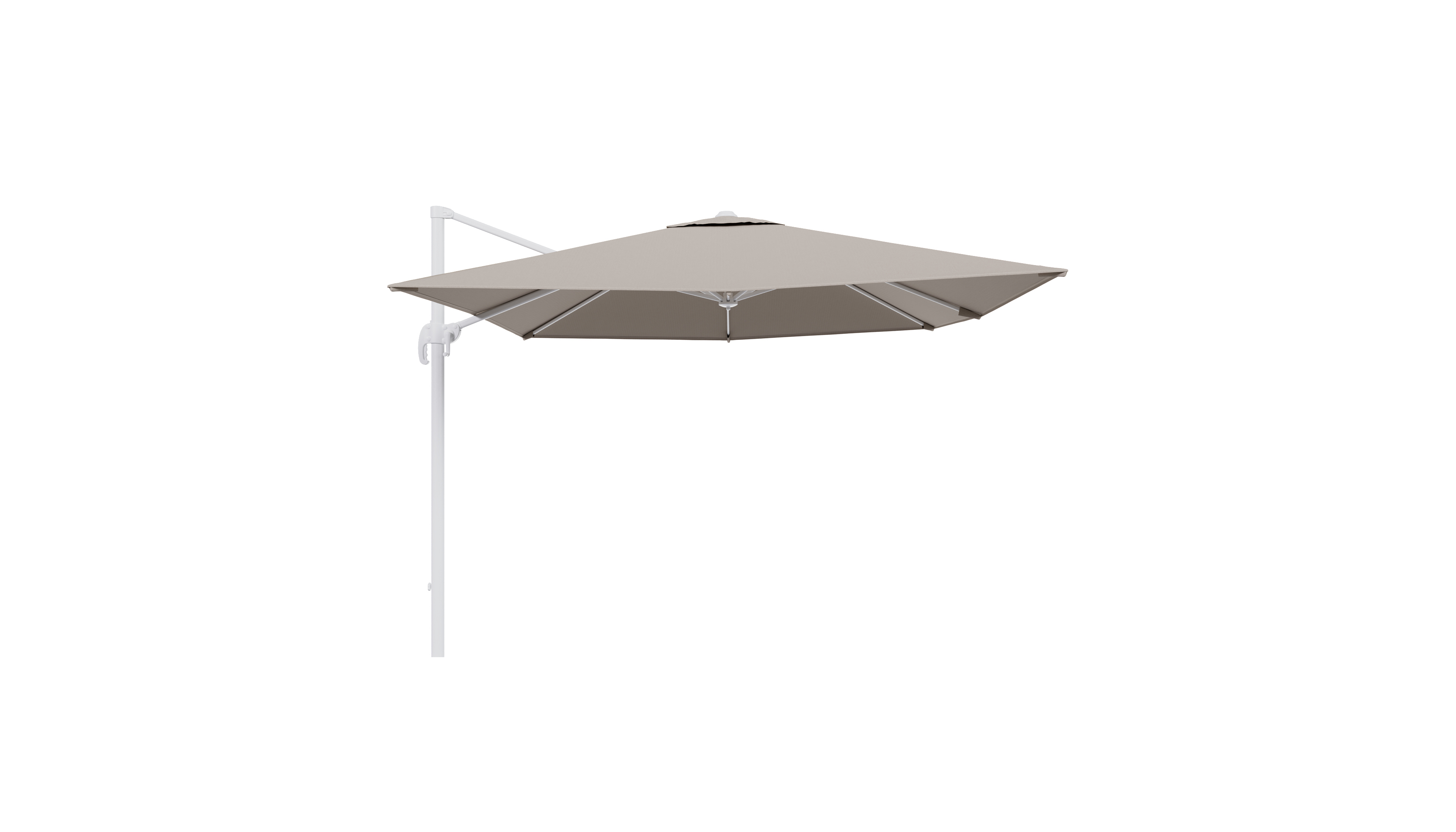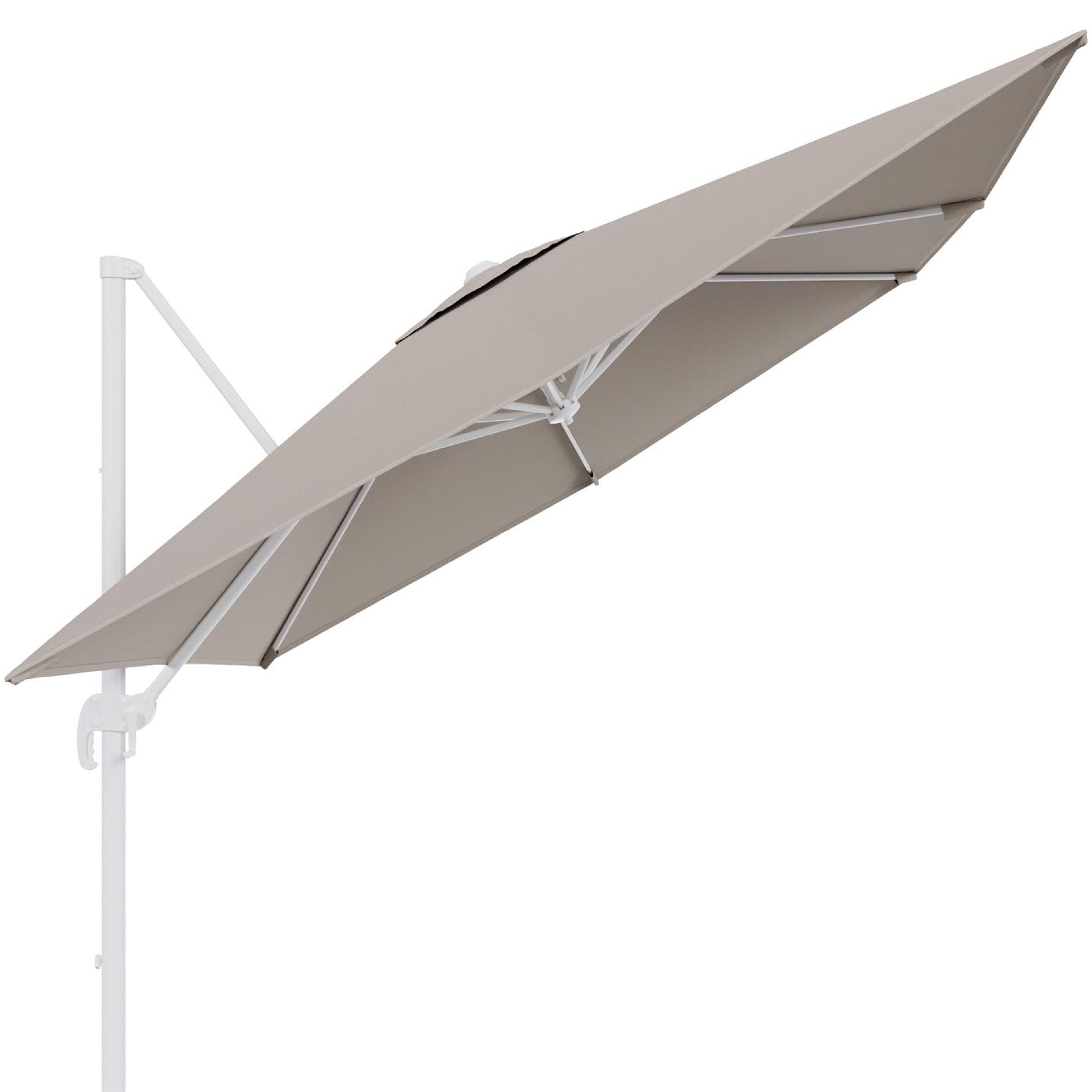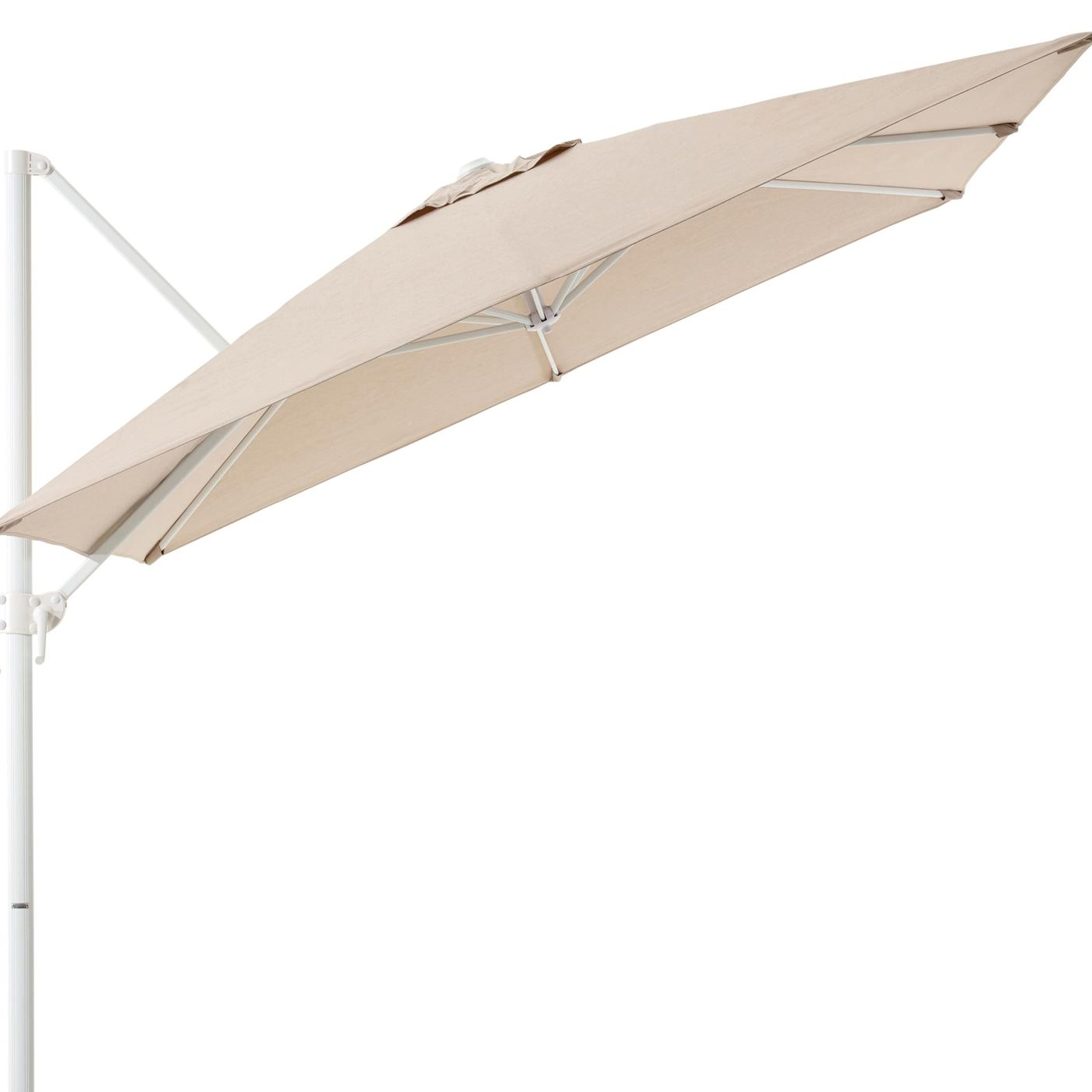 De parasoldoek is gemaakt uit Weather+ Softtouch. De duurzame stof voelt zacht aan en is vuilafstotend. Een Weather+ Softtouch parasoldoek is beperkt waterafstotend. In de winter of bij langdurige regen dek je de parasol best af met de beschermhoes.
