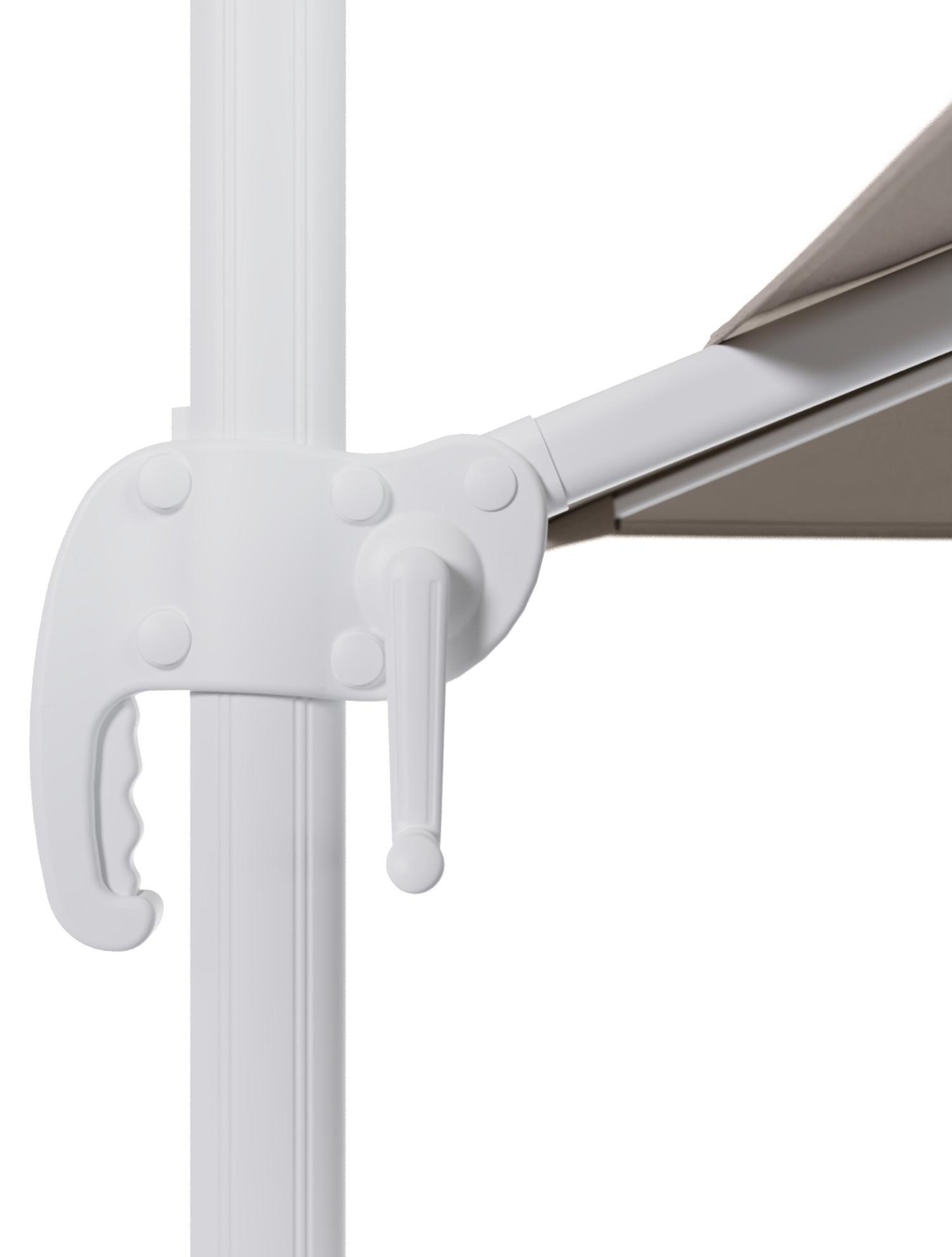 De Calpe zweefparasol is een stevige en gebruiksvriendelijke parasol die jou schaduw en koelte biedt op warme zomerdagen. Het frame van de parasolmast is gemaakt uit roestvrij aluminium, een stevig materiaal. Alle nodige functies zijn aanwezig, zo kan je de parasol makkelijk verstellen in verschillende hoogtes. De parasol draait ook 360 graden rond zijn eigen as en is compact inklapbaar.