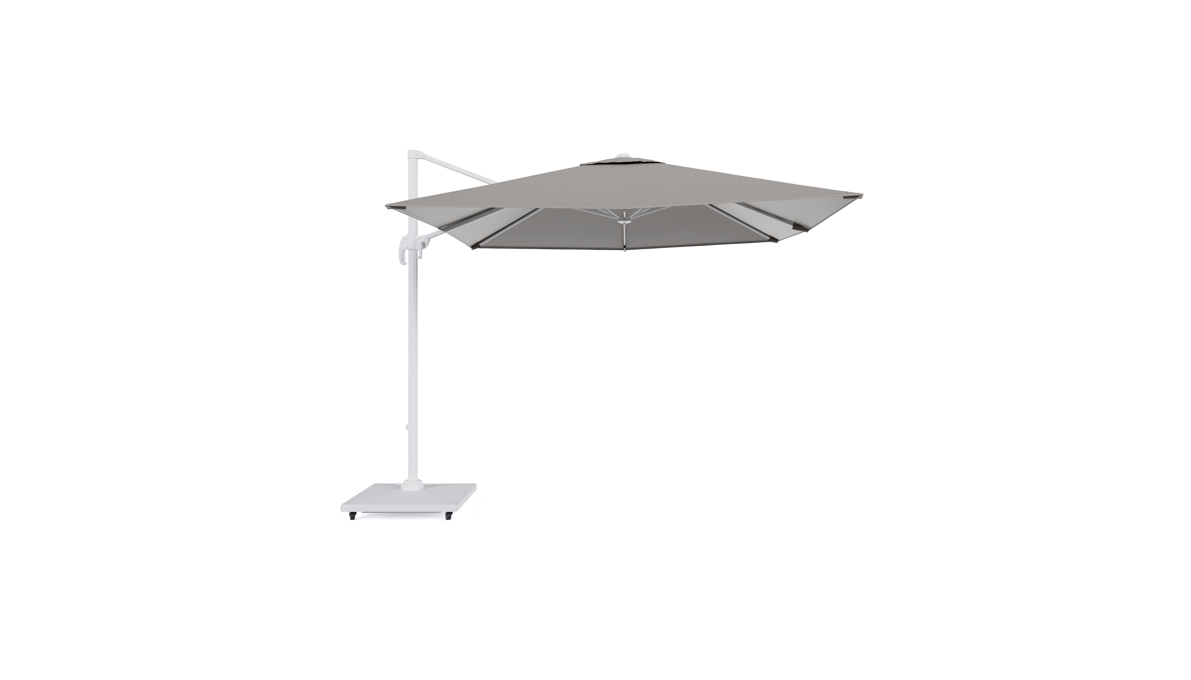 De parasoldoek is gemaakt uit Weather+ Softtouch. De duurzame stof voelt zacht aan en is vuilafstotend. Een Weather+ Softtouch parasoldoek is beperkt waterafstotend. In de winter of bij langdurige regen dek je de parasol best af met de beschermhoes.