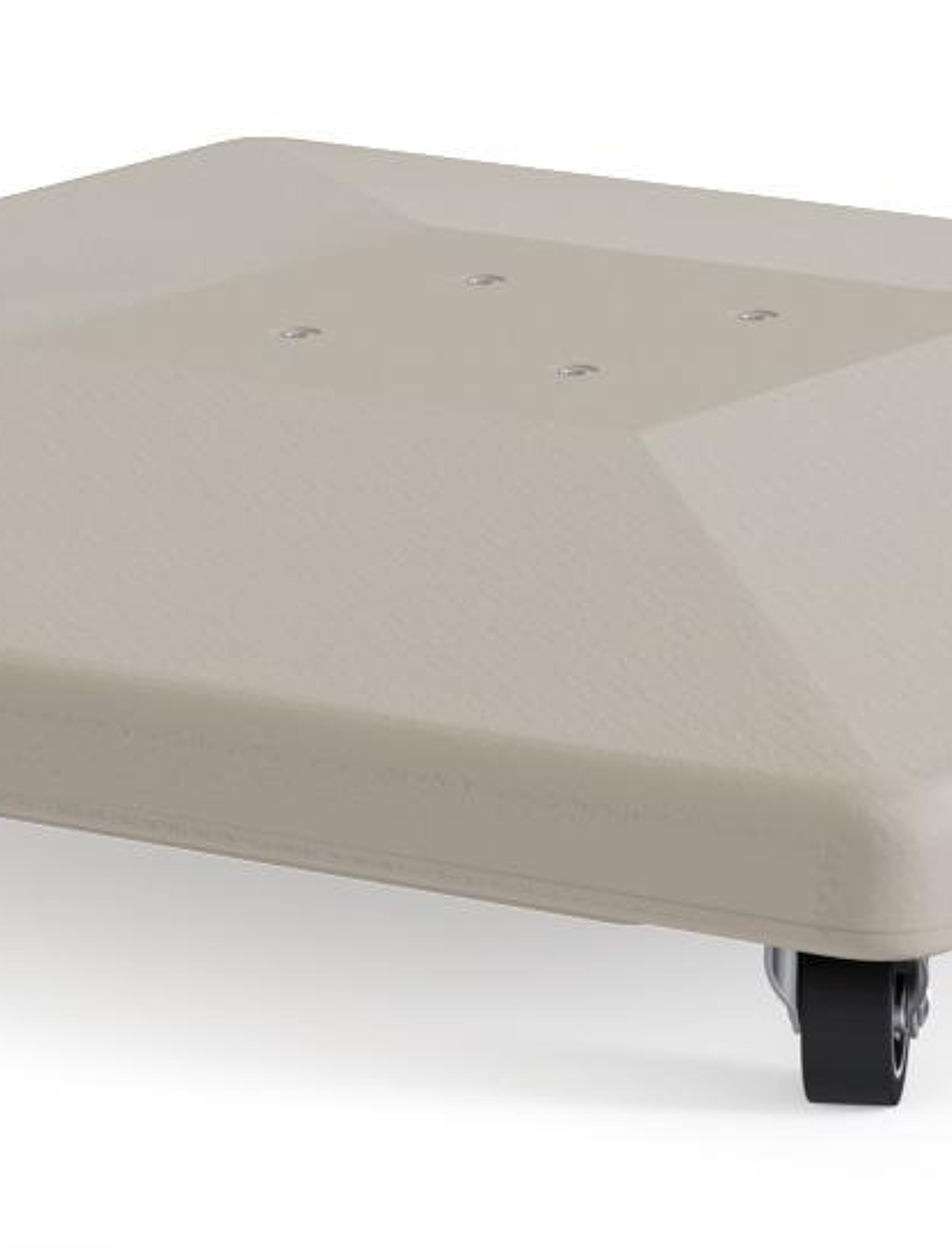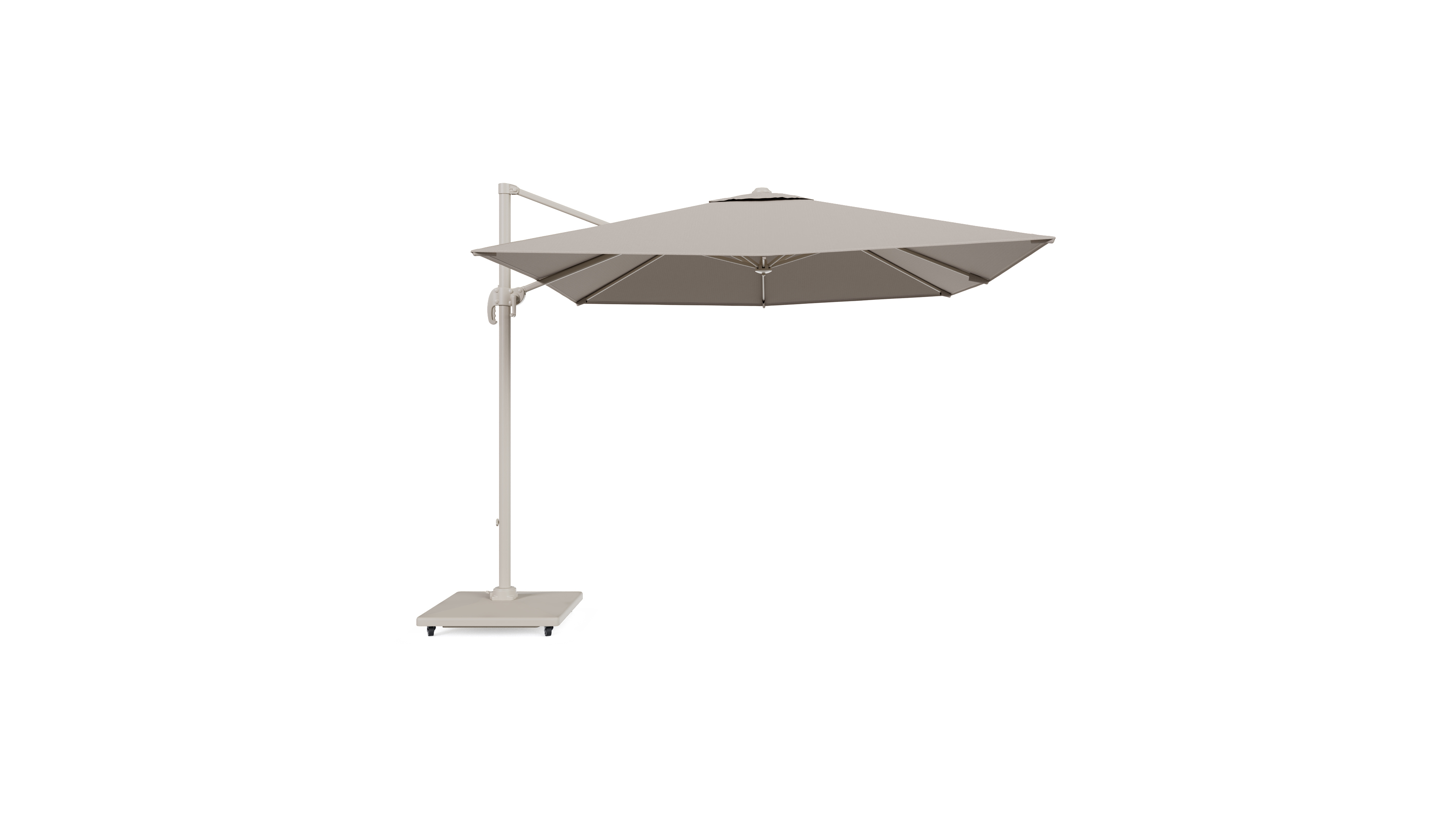 De parasolvoet uit beton met wielen is inclusief zodat je de parasol makkelijk kan verplaatsen.