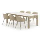 Een Sintered stone tafelblad bevat verschillende soorten mineralen die op een nog hogere druk worden gebakken dan keramiek, maar toch dezelfde eigenschappen heeft. Het materiaal is uiterst stevig. Het is vorst-, hitte- en krasbestendig en eenvoudig schoon te maken. Het tafelblad is gemaakt uit verschillende stukken.