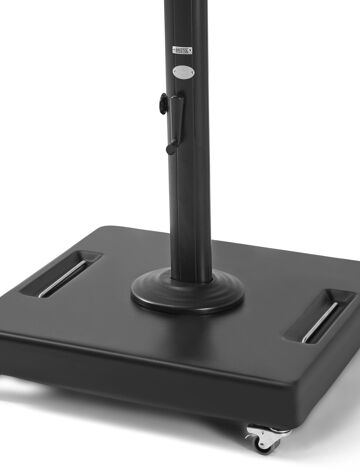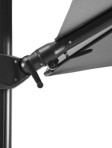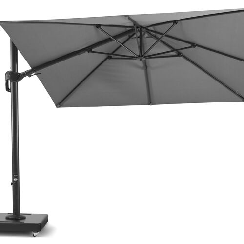 De Rufina parasol is een zeer gebruiksvriendelijke parasol. Het is een zweefparasol waardoor de mast niet in de weg staat. De parasol is makkelijk open te draaien via de hendel. Bovendien is hij ook in hoogte verstelbaar en beschikt de Rufina parasol ook over een tilt-functie. Deze functie biedt de mogelijkheid om de parasol te kantelen, zodat je de stand kunt aanpassen naar de positie van de zon. De parasoldoek is gemaakt van polyester. Om er voor te zorgen dat de parasol stabiel blijft staan bij hevige wind wordt deze parasol gecombineerd met een zware Lapido voet van 160 kg.