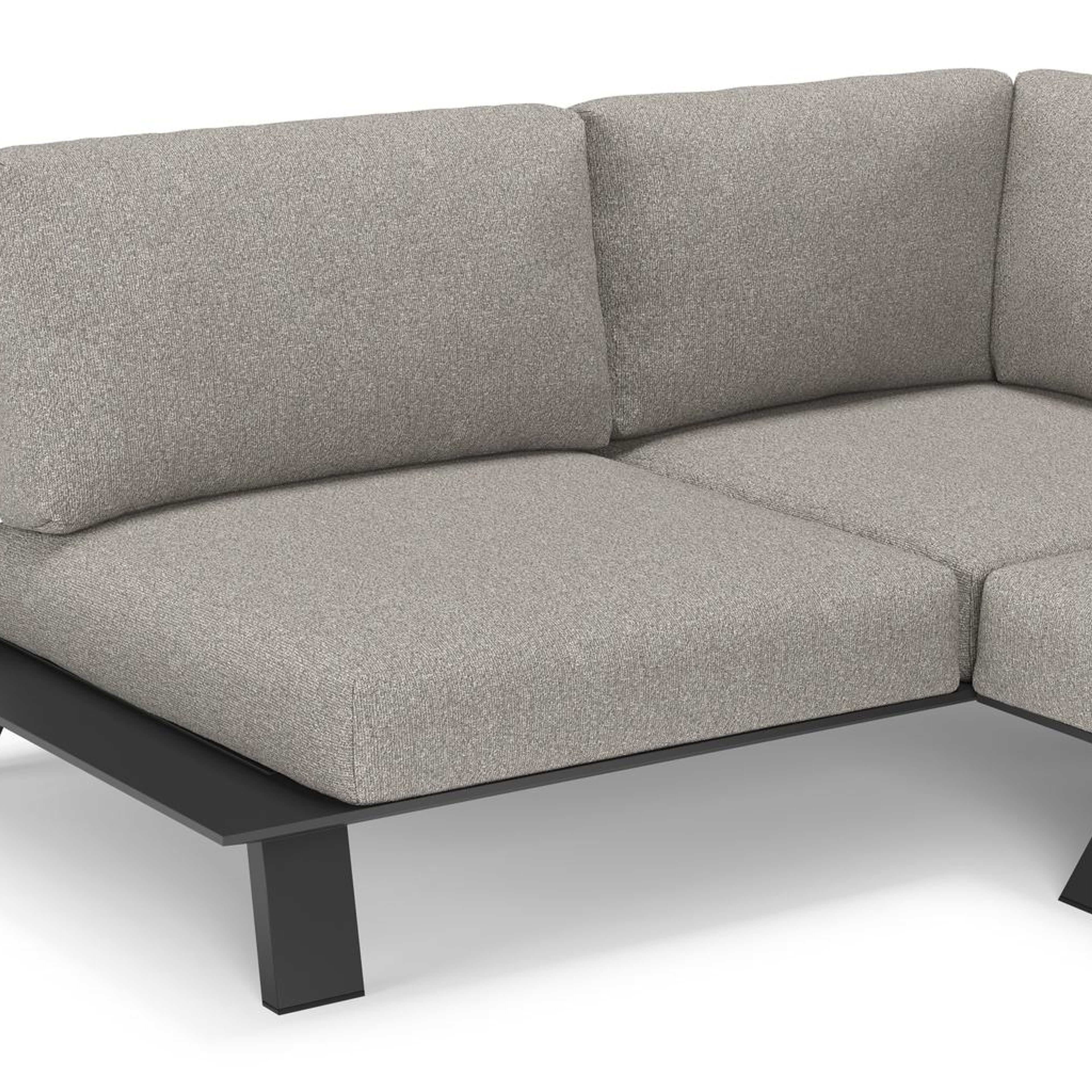 Cesano loungehoek in zwart aluminium met tundra charcoal all weather Sunbrella® luxe kussen | Exterioo tuinmeubelen