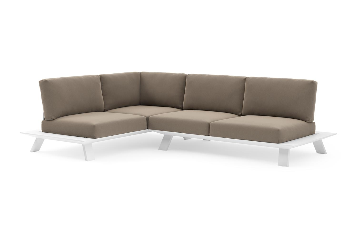 Cesano loungehoek in wit aluminium met natte heather grey all weather Sunbrella® luxe kussen | Exterioo