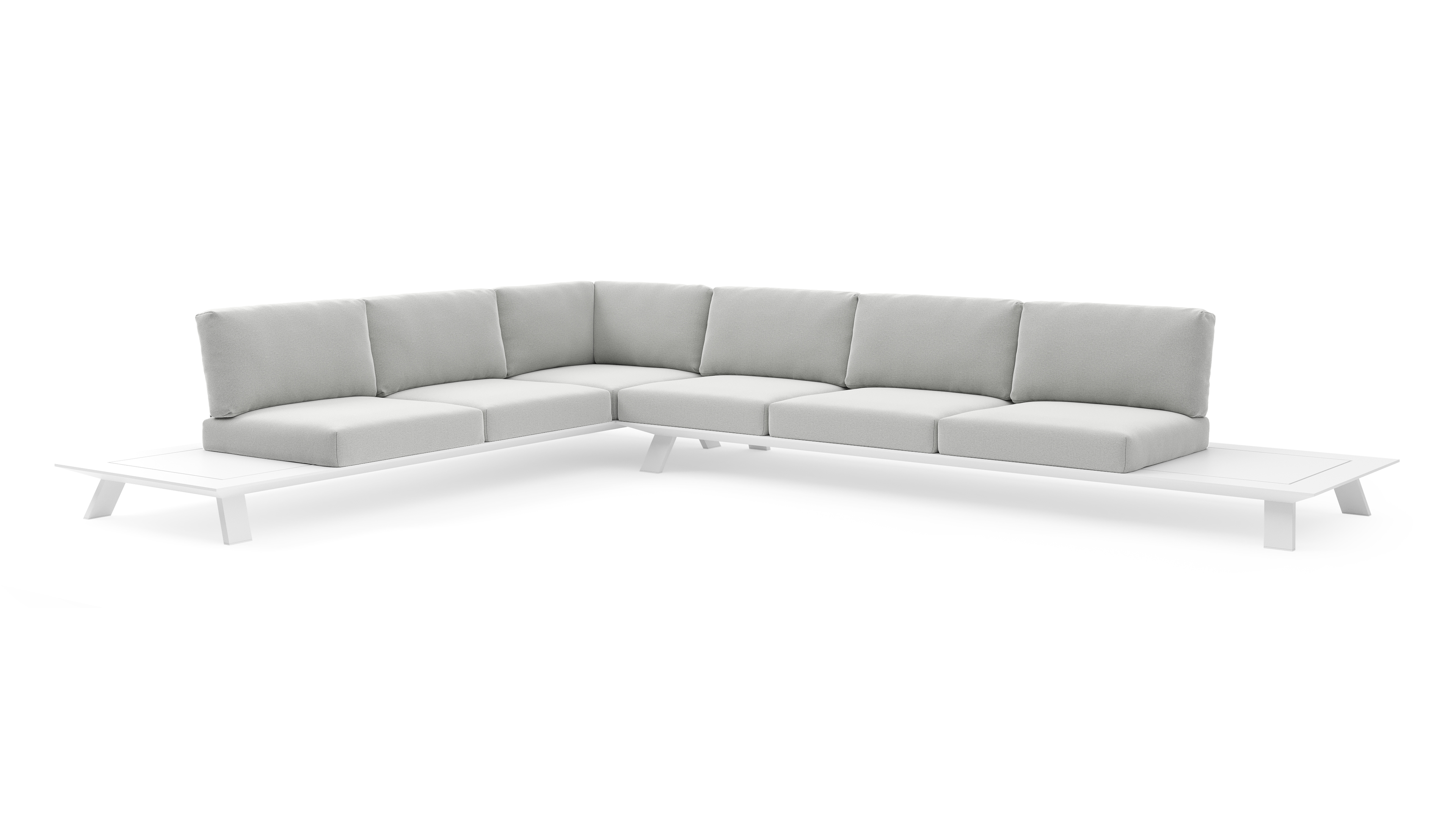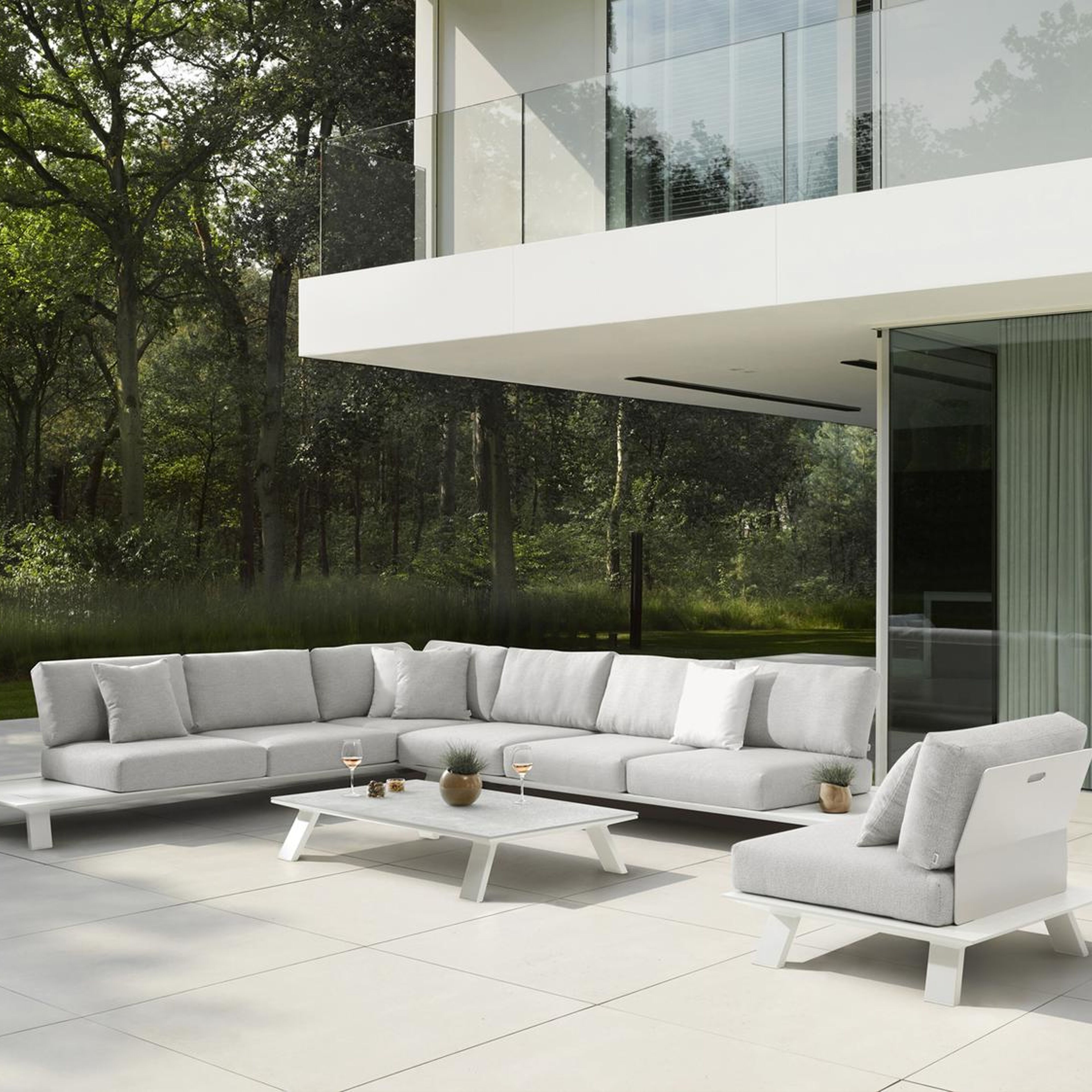 Cesano loungehoek in wit aluminium met natte grey chine all weather Sunbrella® luxe kussen | Exterioo tuinmeubelen