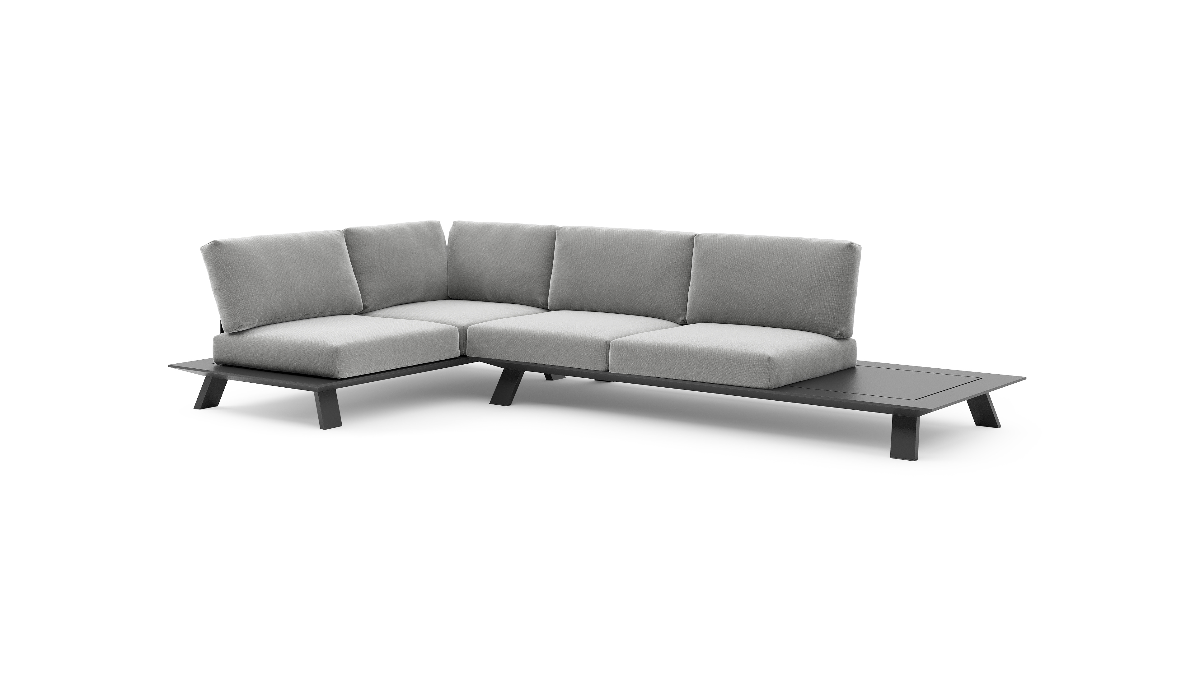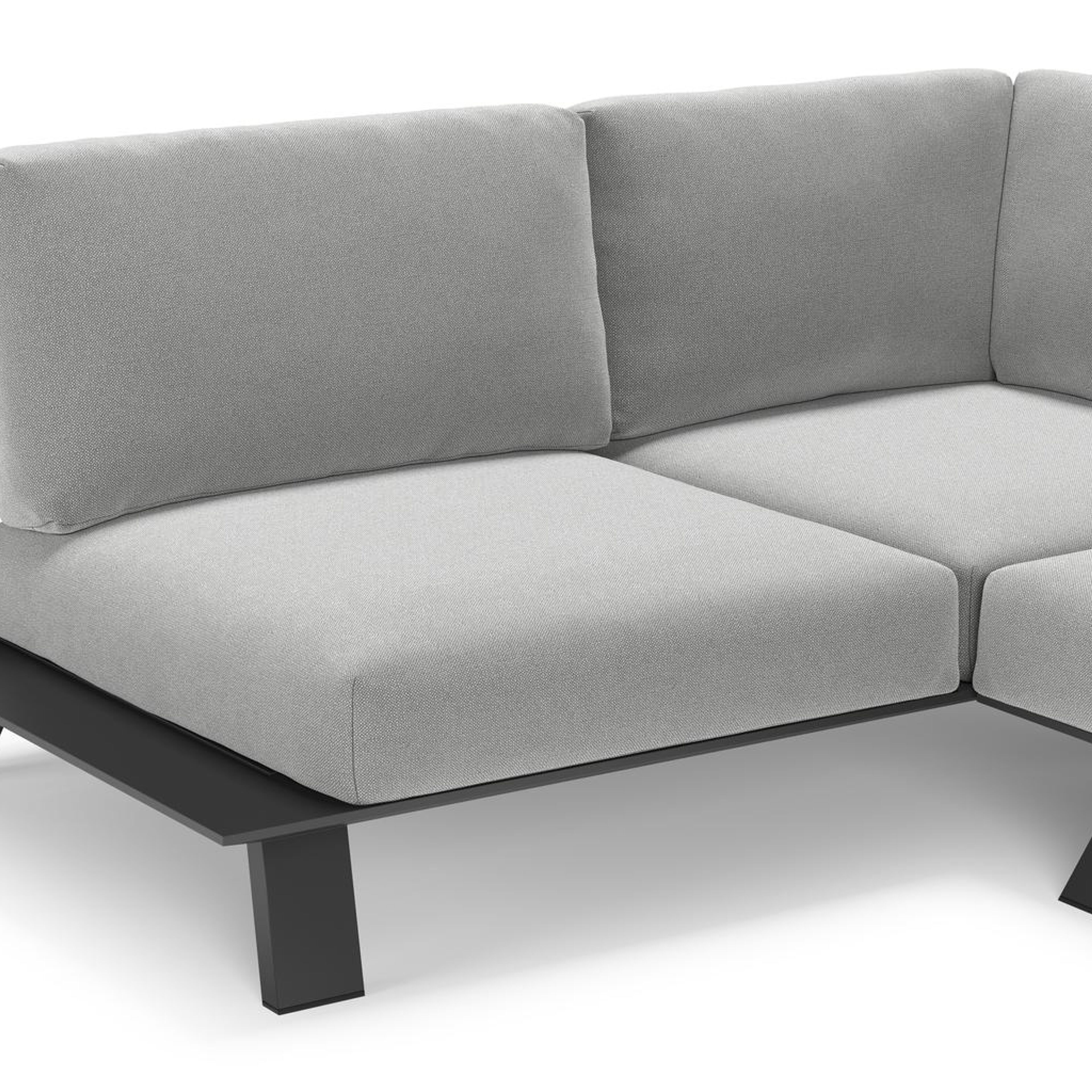 Cesano loungehoek in zwart aluminium met savane grey all weather Sunbrella® luxe kussen | Exterioo tuinmeubelen