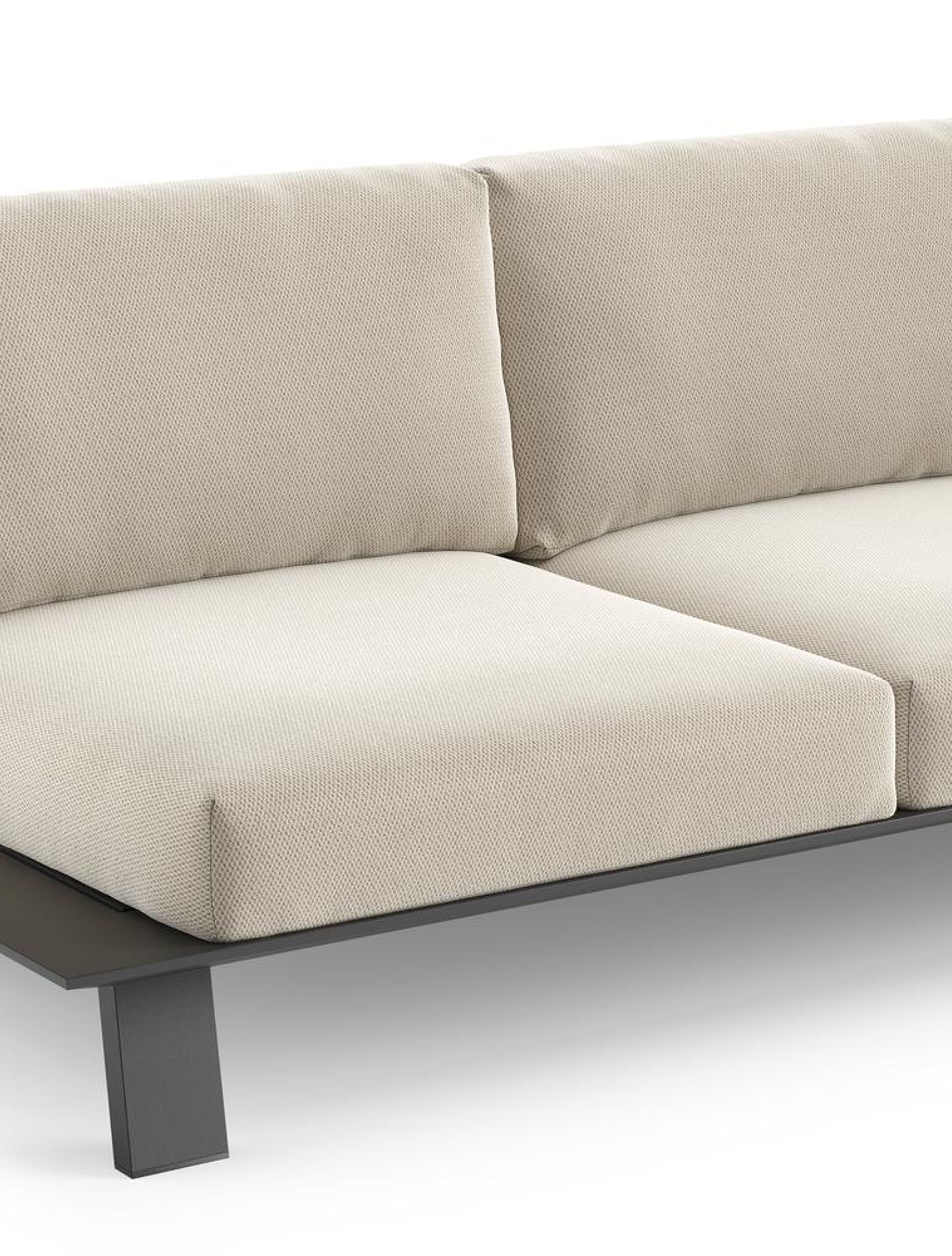 De Cesano lounge heeft een minimalitisch design, maar is zeer stijlvol dankzij het verfijnde frame. De collectie heeft onder het frame typerende schuine pootjes als klein detail. Het frame, vervaardigd uit hoogwaardig aluminium, garandeert niet alleen een stijlvolle uitstraling maar is tevens bestand tegen roestvorming.