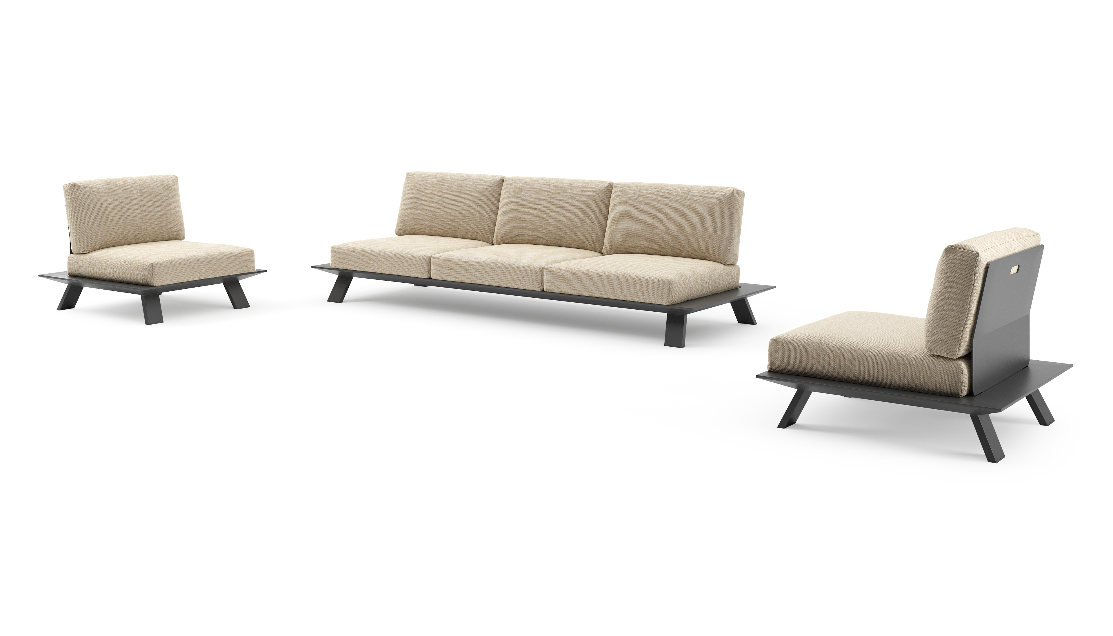 Cesano loungeset in zwart aluminium met althea camel all weather Cosytica kussen | Exterioo tuinmeubelen