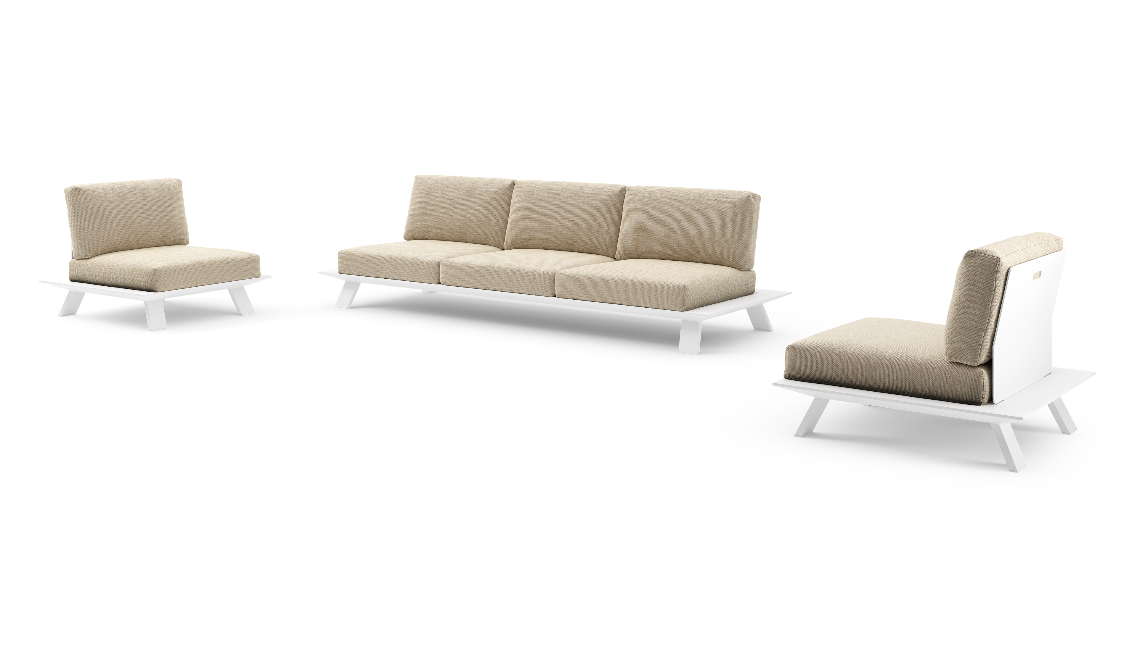 Cesano loungeset in wit aluminium met althea camel all weather Cosytica kussen | Exterioo tuinmeubelen