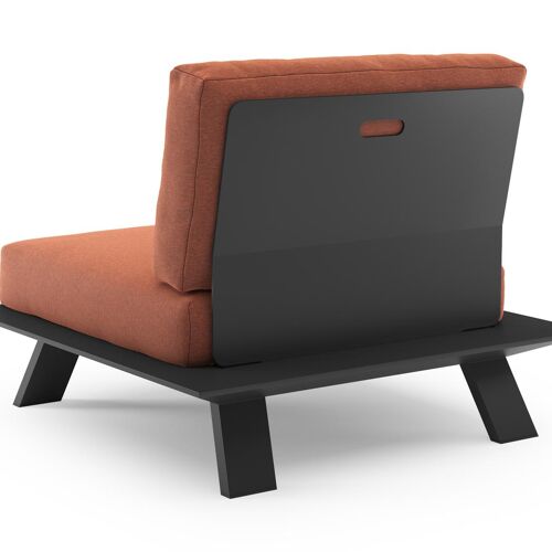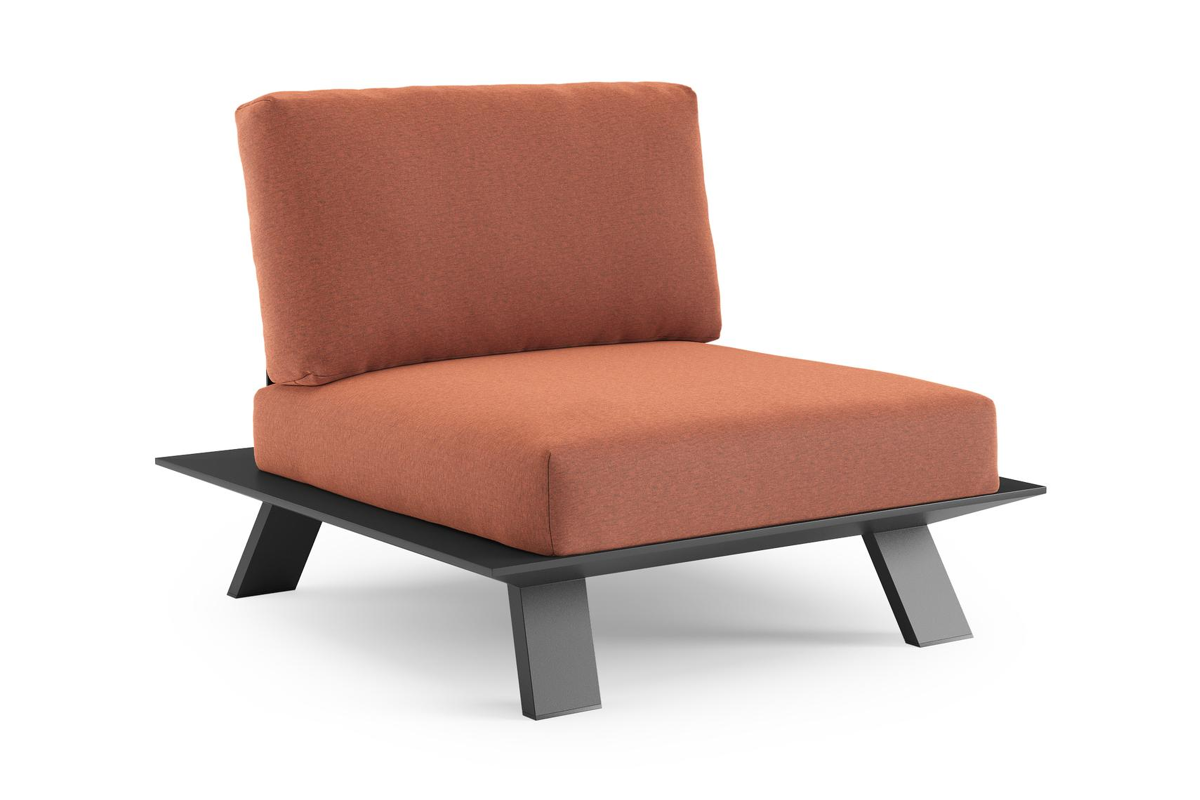 De Cesano lounge heeft een minimalitisch design, maar is zeer stijlvol dankzij het verfijnde frame. De collectie heeft onder het frame typerende schuine pootjes als klein detail. Het frame, vervaardigd uit hoogwaardig aluminium, garandeert niet alleen een stijlvolle uitstraling maar is tevens bestand tegen roestvorming.