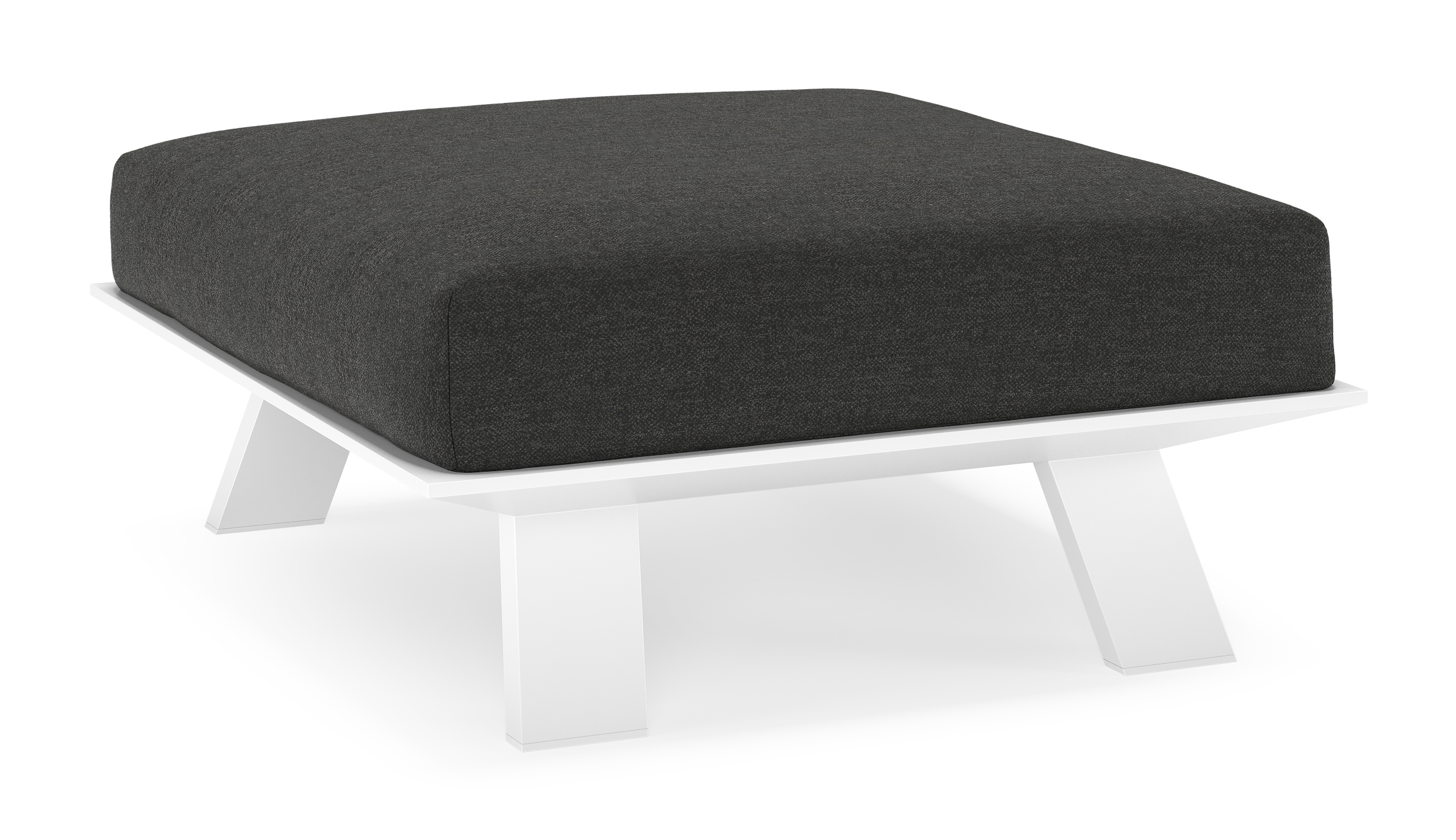 Cesano poef in wit aluminium met chartres sooty all weather Sunbrella® luxe kussen | Exterioo tuinmeubelen