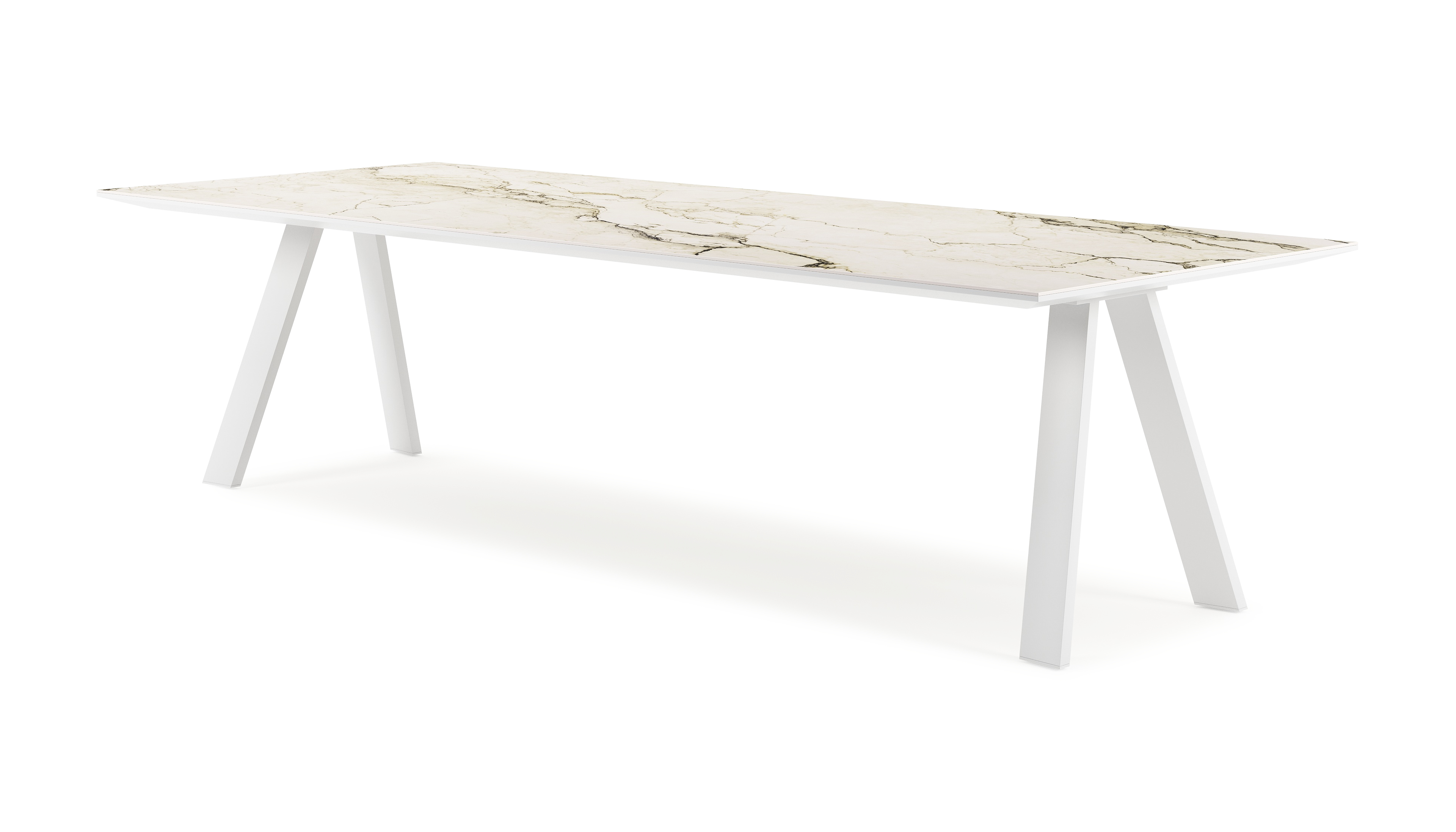 Cesano tuintafel rechthoekig in wit aluminium en volkeramiek colorado dunes - L 280 x B 110 x H 75 cm | Exterioo tuinmeubelen