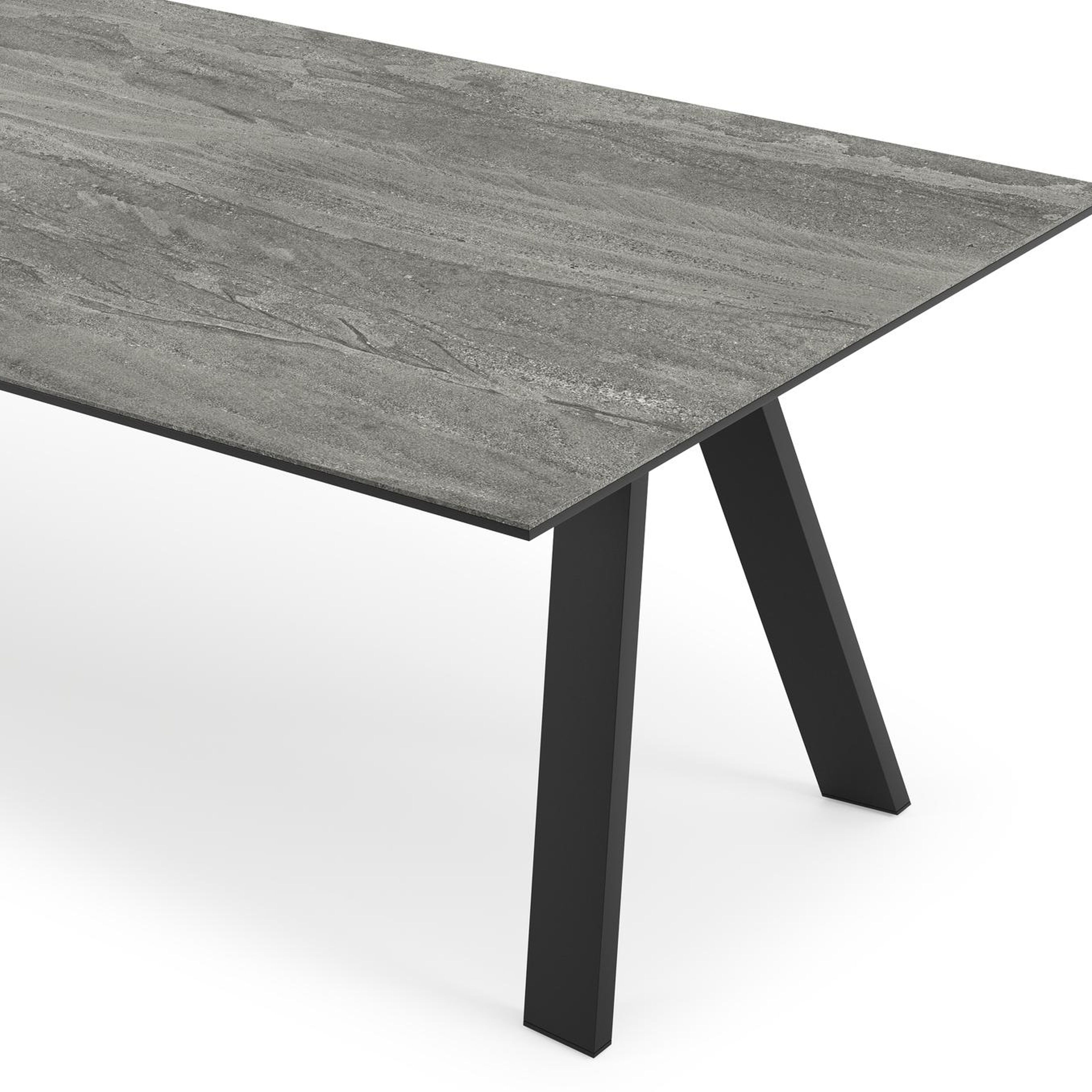De Cesano tafel onderscheidt zich door zijn stijlvolle onderstel met omgekeerde V-poten, wat een eigentijdse en elegante uitstraling geeft. Met zijn tijdloze charme voegt de Cesano tafel een vleugje moderne klasse toe aan elk interieur.