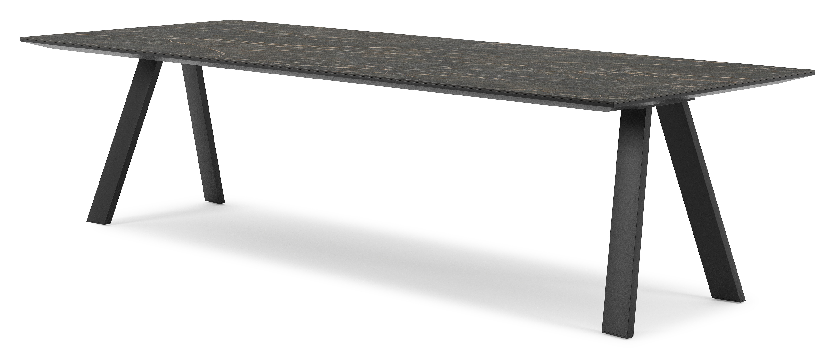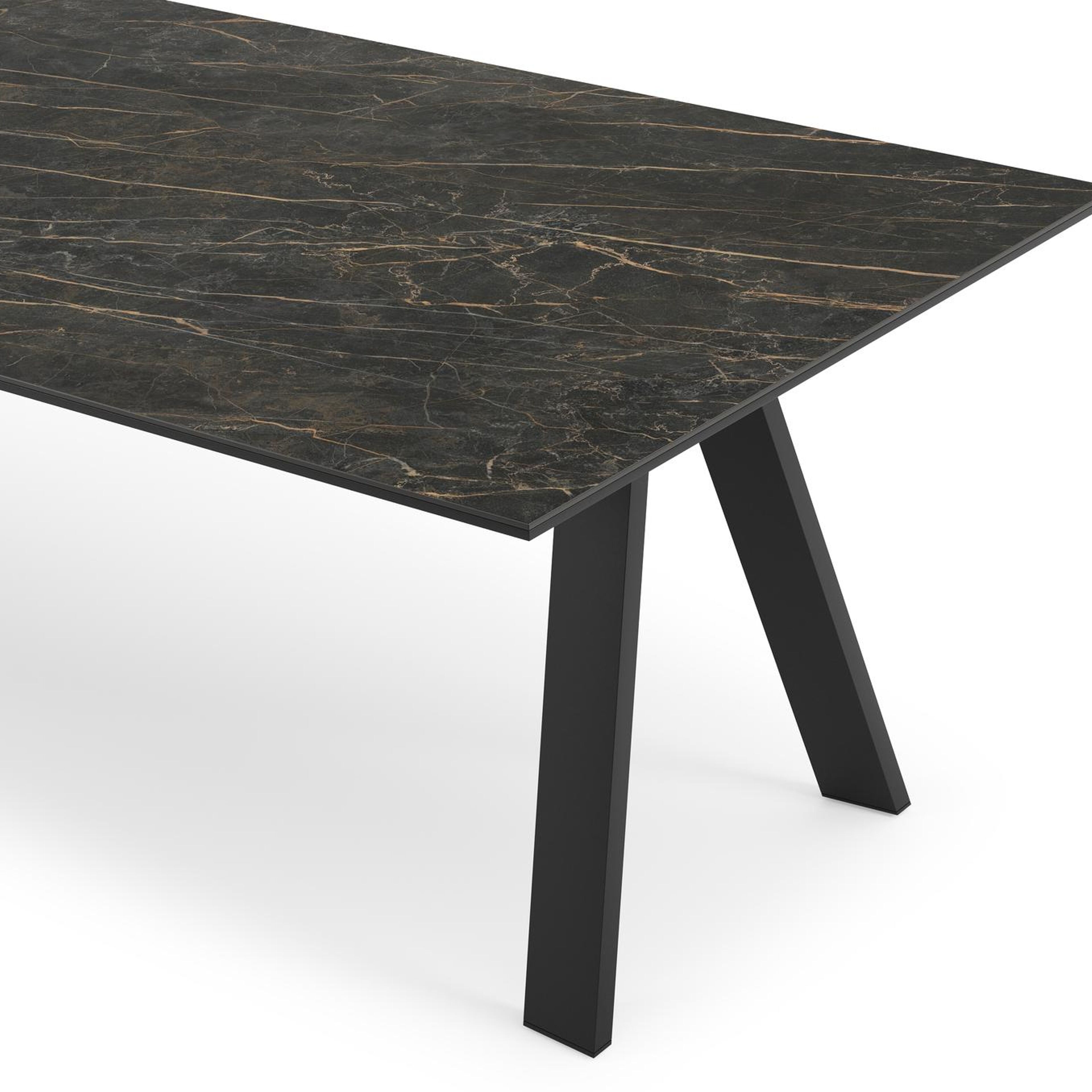 De Cesano tafel onderscheidt zich door zijn stijlvolle onderstel met omgekeerde V-poten, wat een eigentijdse en elegante uitstraling geeft. Met zijn tijdloze charme voegt de Cesano tafel een vleugje moderne klasse toe aan elk interieur.