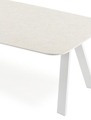 De Cesano tafel onderscheidt zich door zijn stijlvolle onderstel met omgekeerde V-poten, wat een eigentijdse en elegante uitstraling geeft. Met zijn tijdloze charme voegt de Cesano tafel een vleugje moderne klasse toe aan elk interieur.