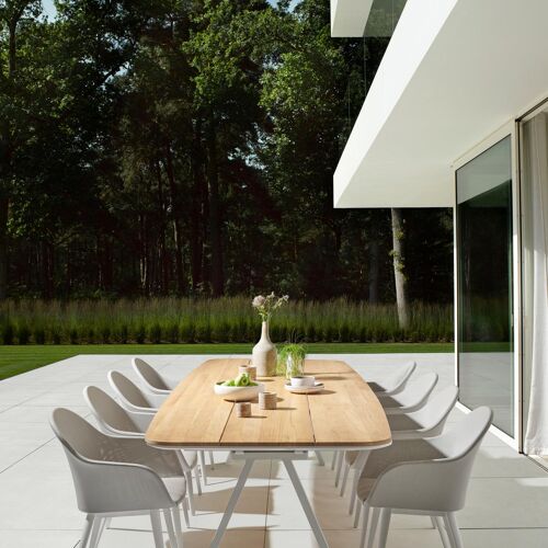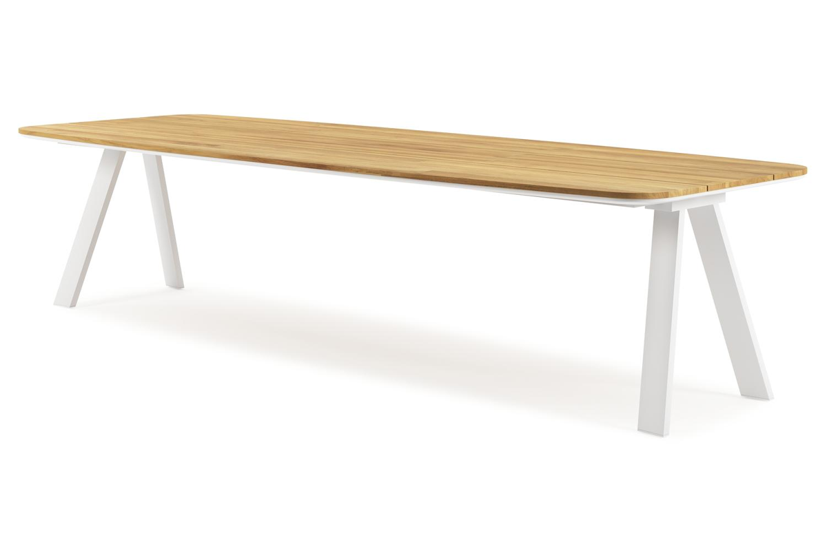 Cesano tuintafel in wit aluminium en teak - L 315 x B 115 x H 75 cm | Exterioo