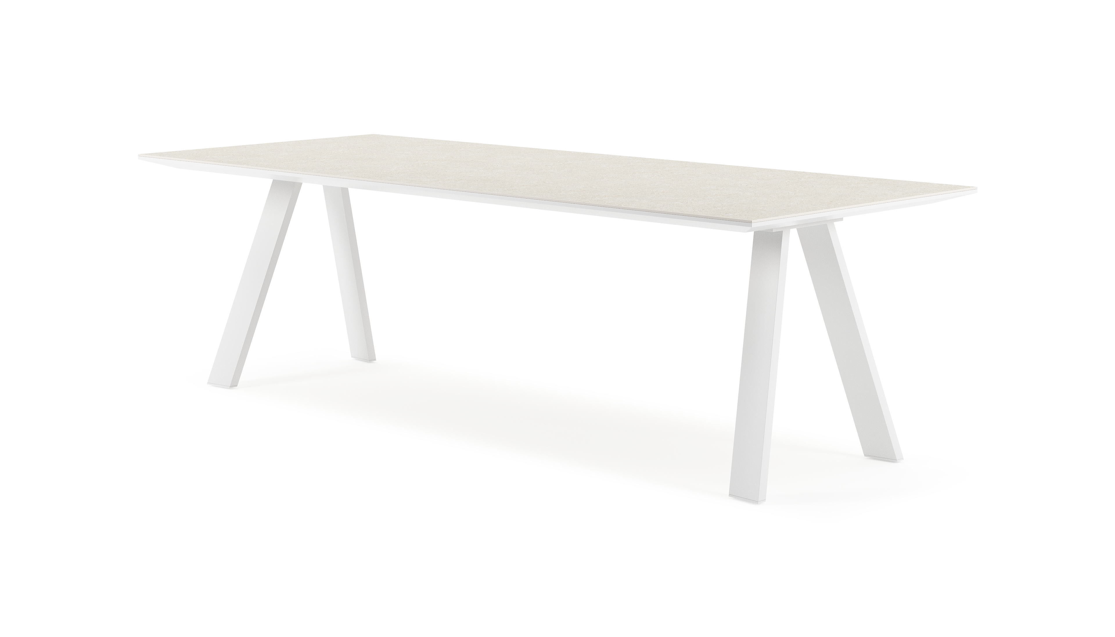 De Cesano tafel onderscheidt zich door zijn stijlvolle onderstel met omgekeerde V-poten, wat een eigentijdse en elegante uitstraling geeft. Met zijn tijdloze charme voegt de Cesano tafel een vleugje moderne klasse toe aan elk interieur.