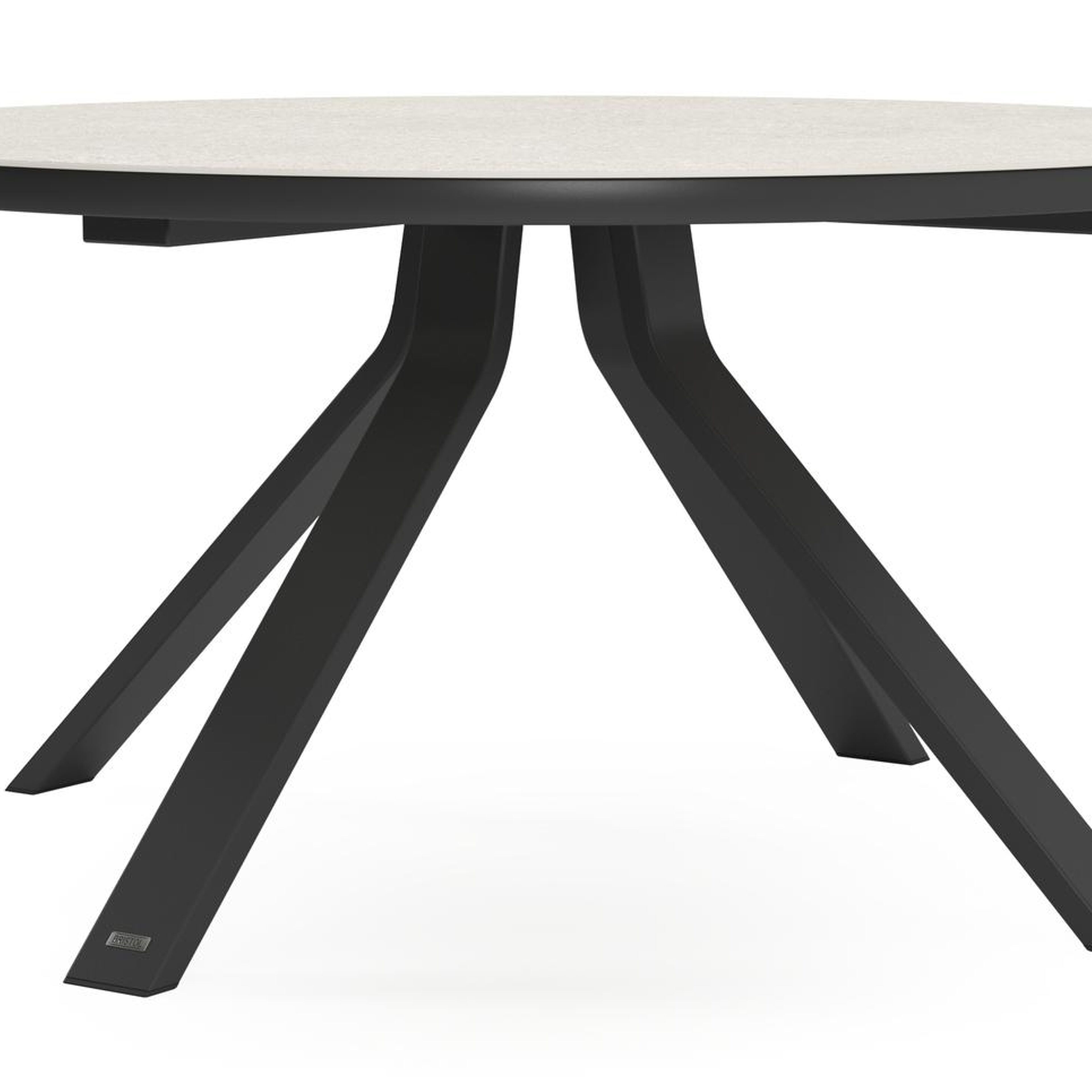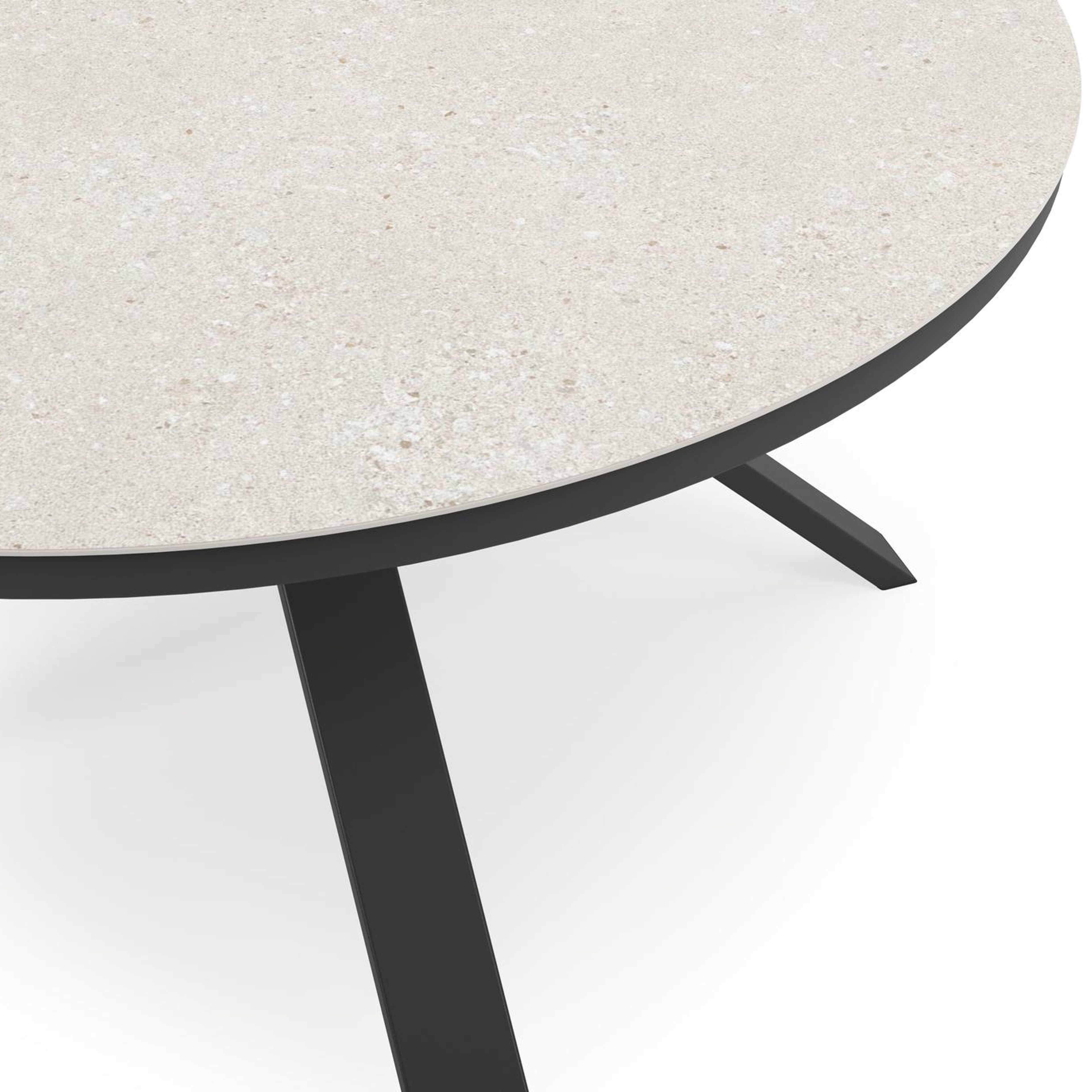 De ronde Cesano tafel heeft een typische, herkenbare poot. Bovendien heb je aan een ronde tafel een gezellige tafelbeleving omdat je tegenover elkaar kunt zitten.