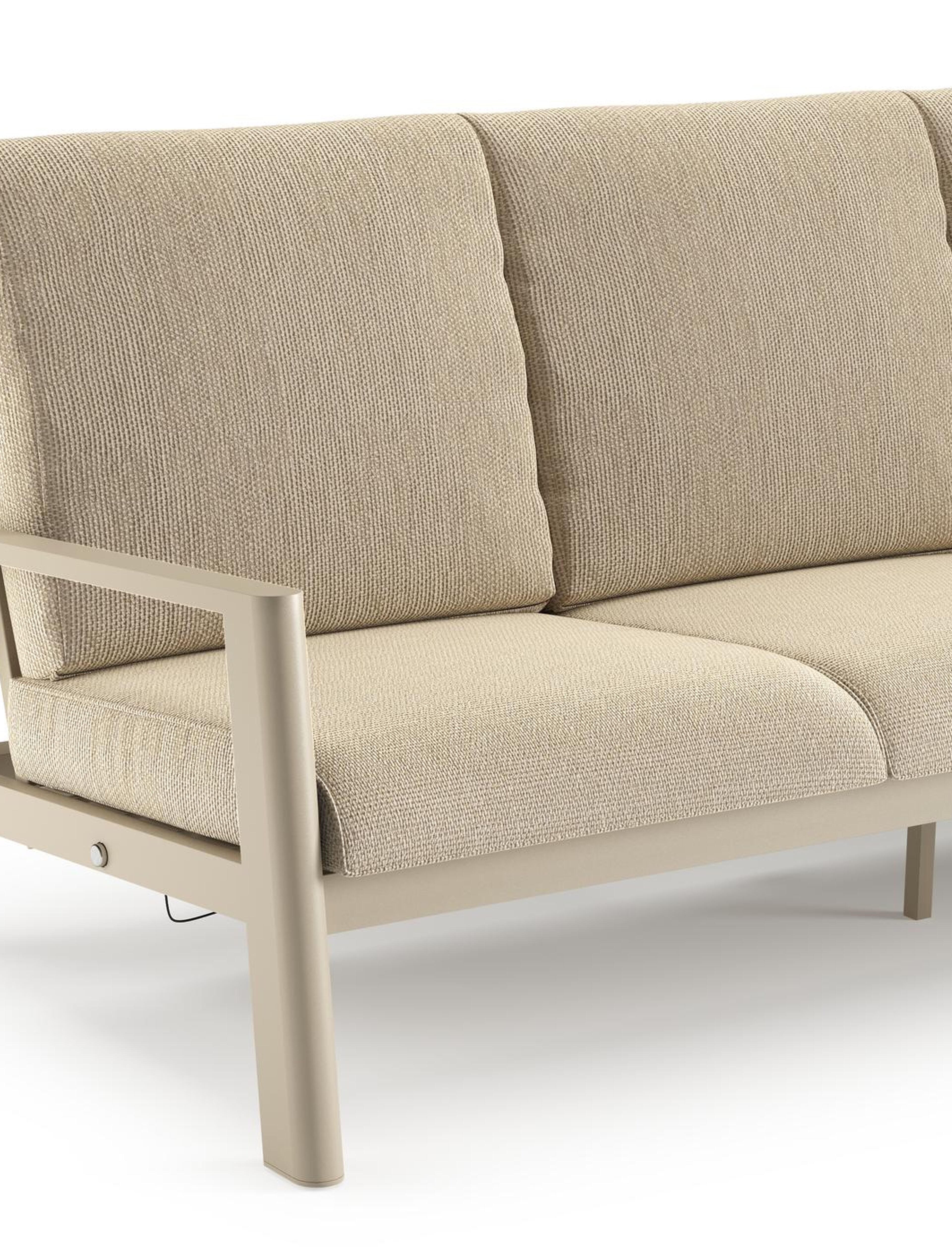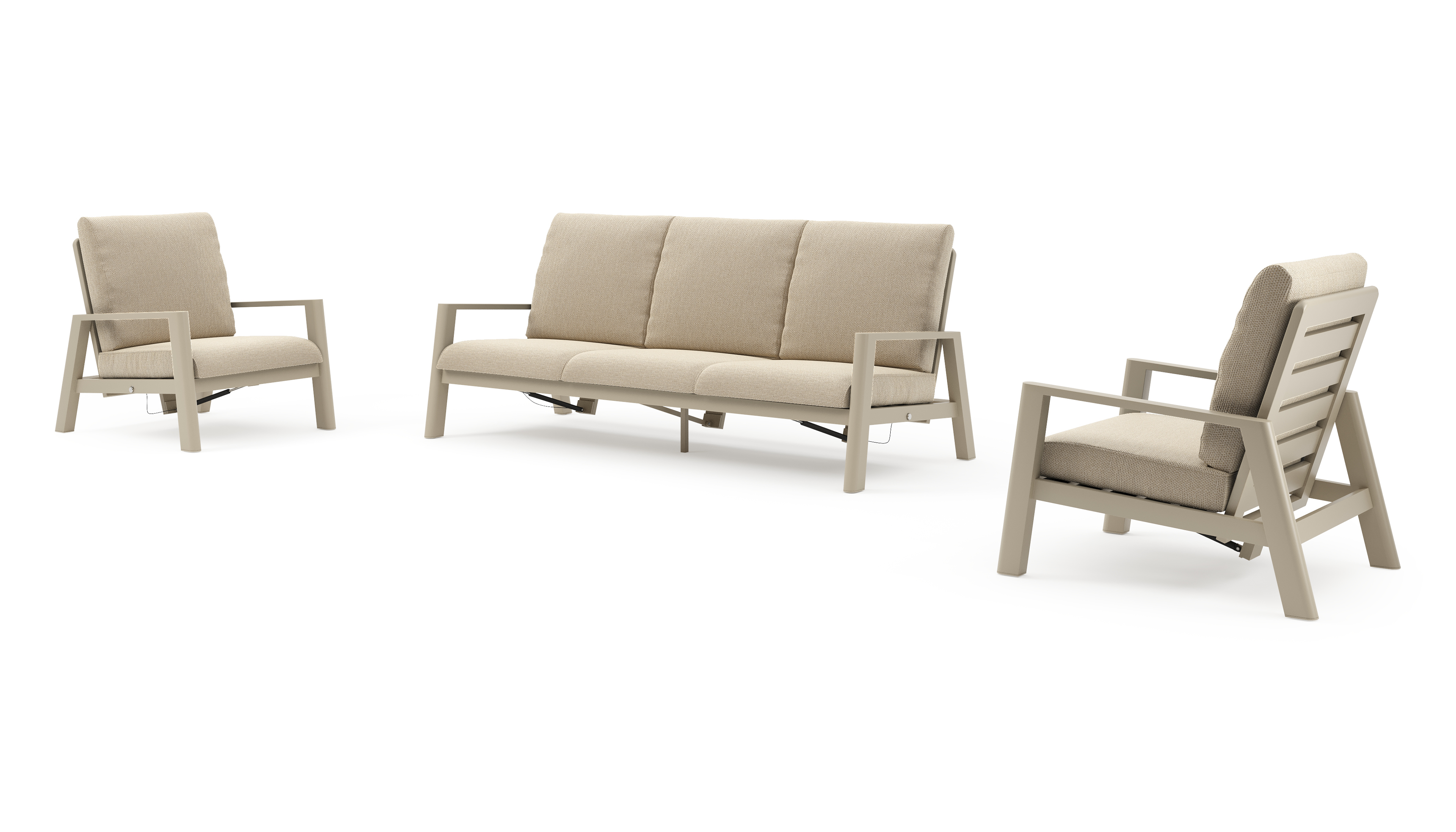 Cirello loungeset in beige aluminium met althea camel all weather cosytica kussen | Exterioo tuinmeubelen