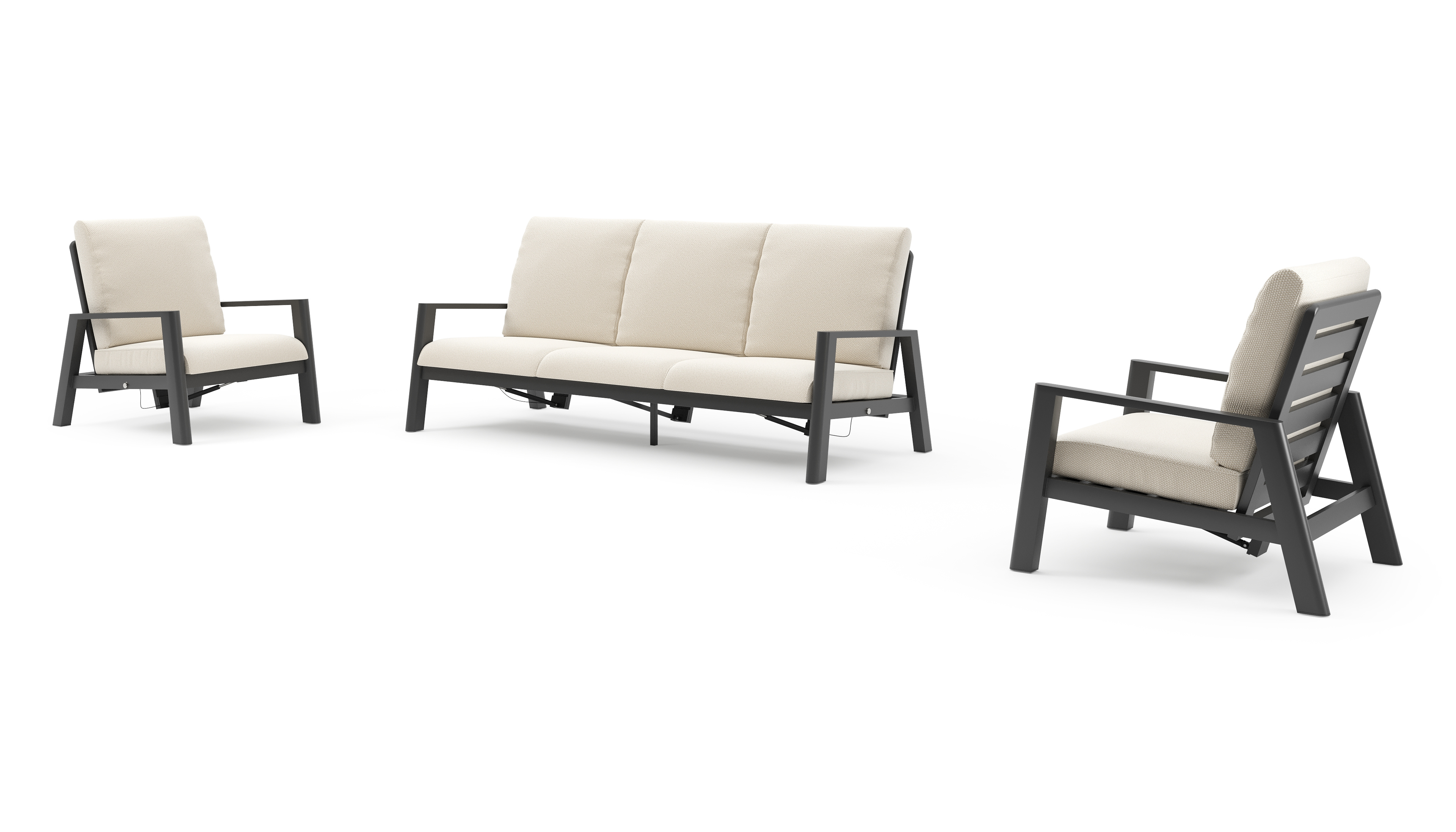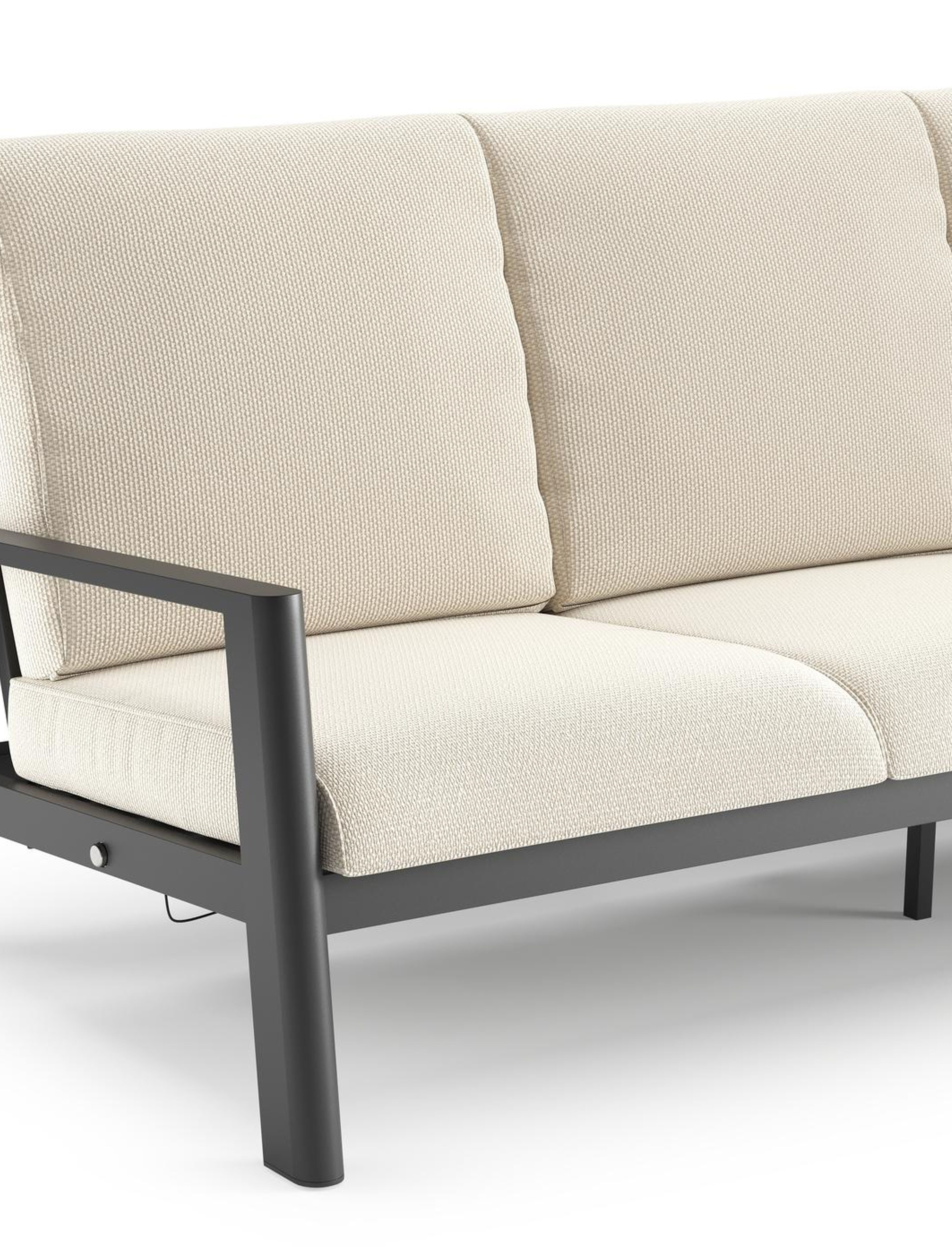 Cirello loungeset in zwart aluminium met althea off white all weather cosytica kussen | Exterioo tuinmeubelen