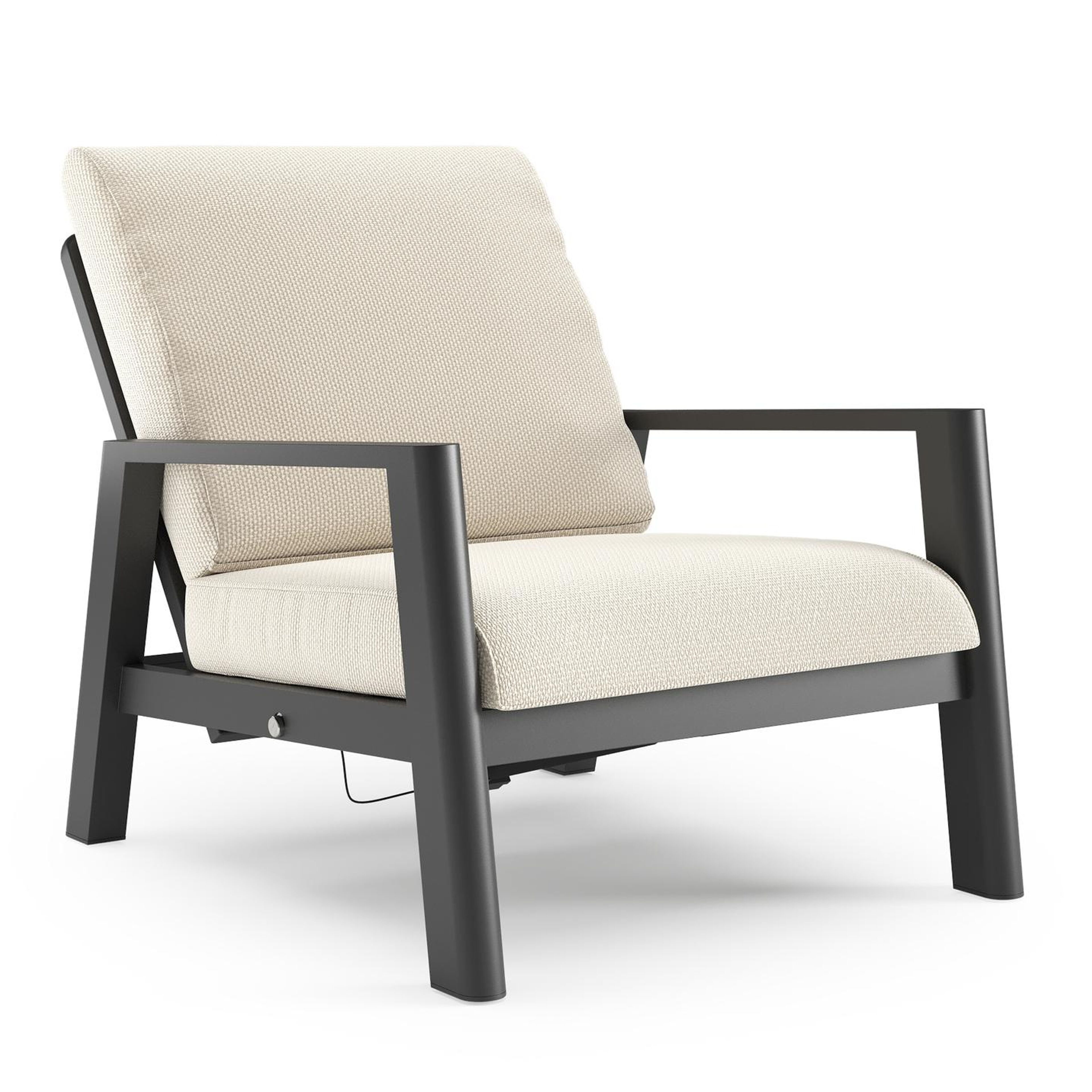 Cirello loungestoel in zwart aluminium met althea off white all weather cosytica kussen | Exterioo tuinmeubelen