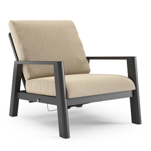 Cirello loungestoel in zwart aluminium met althea camel all weather cosytica kussen | Exterioo