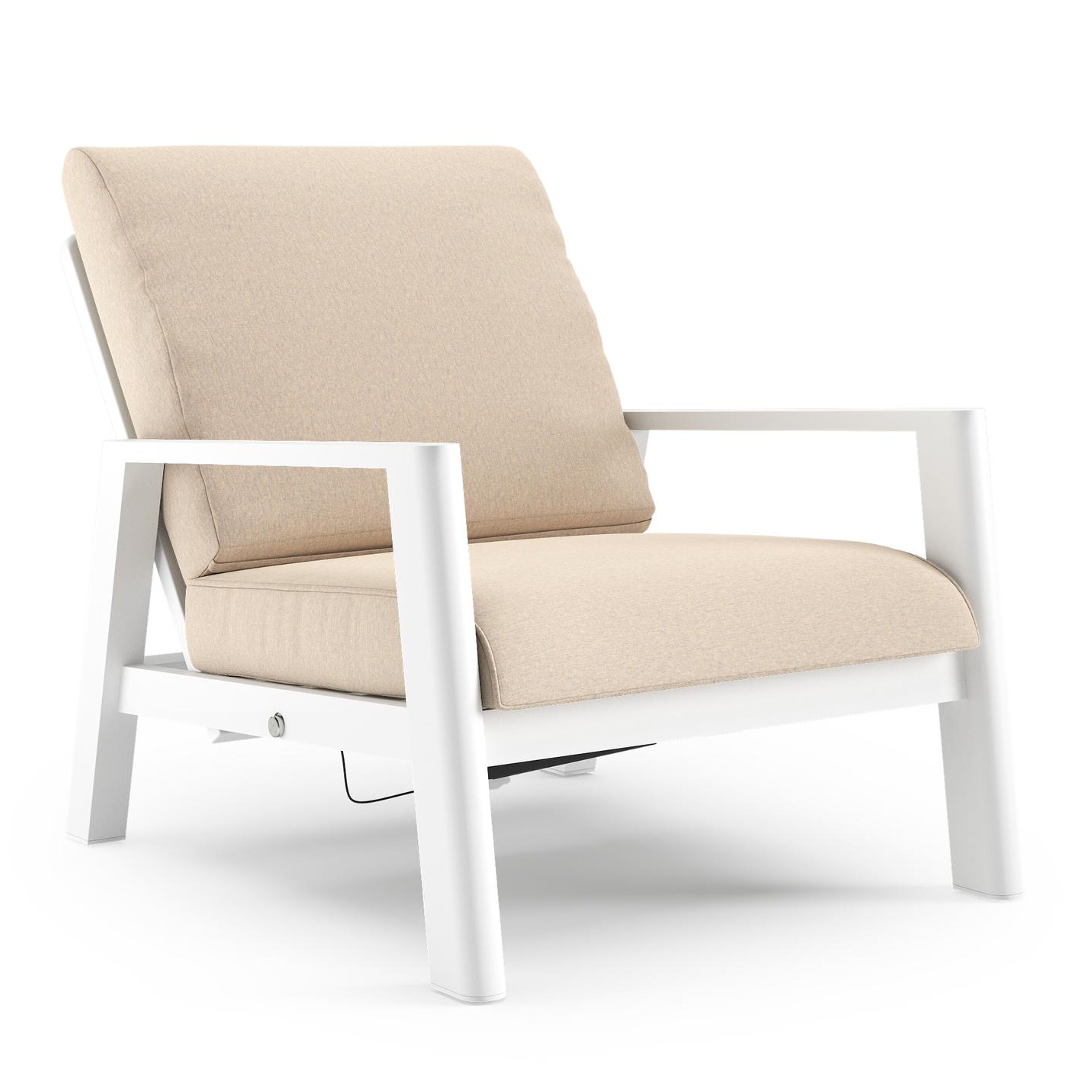 Cirello loungestoel in wit aluminium met heritage papyrus all weather sunbrella® luxe kussen | Exterioo tuinmeubelen