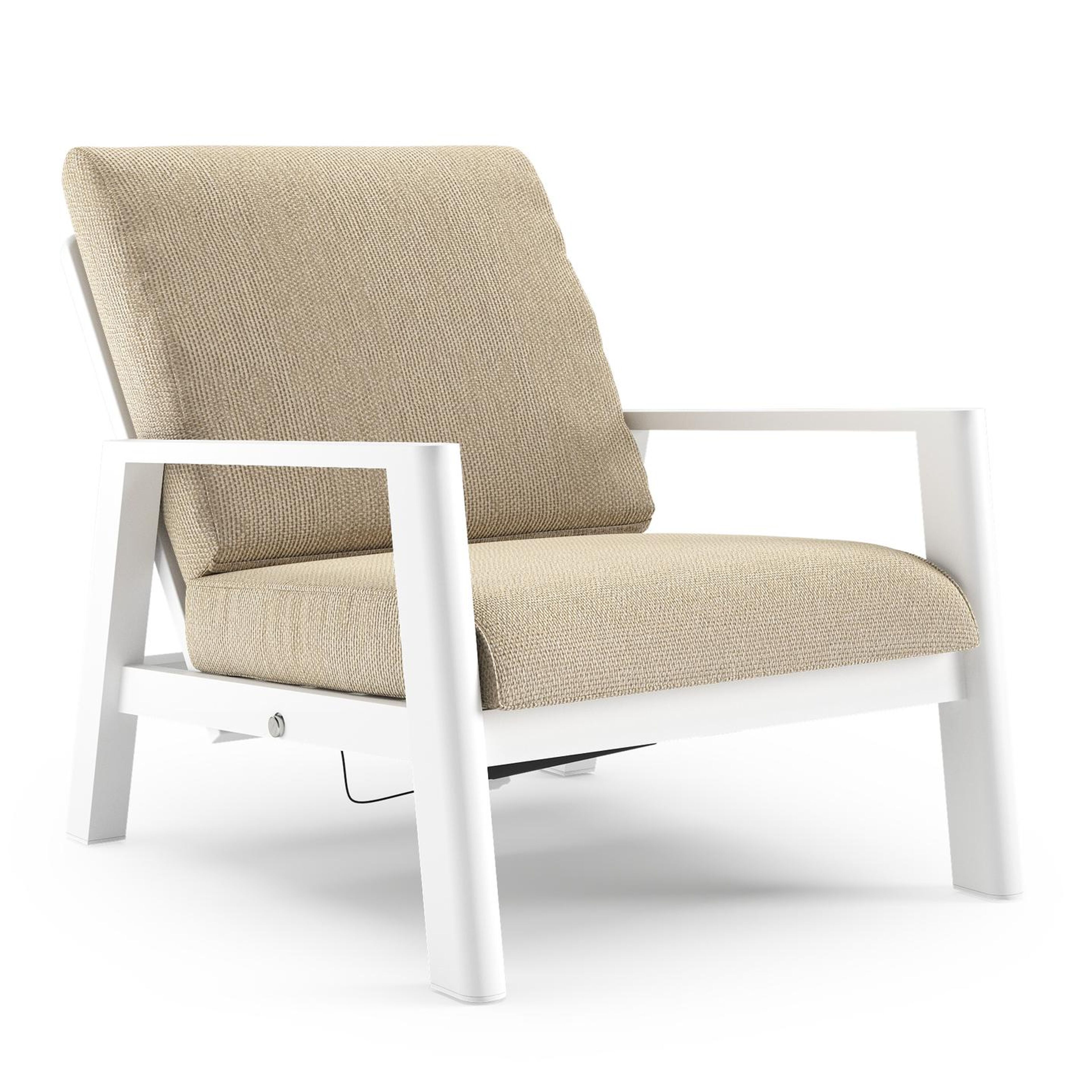Cirello loungestoel in wit aluminium met althea camel all weather cosytica kussen | Exterioo tuinmeubelen