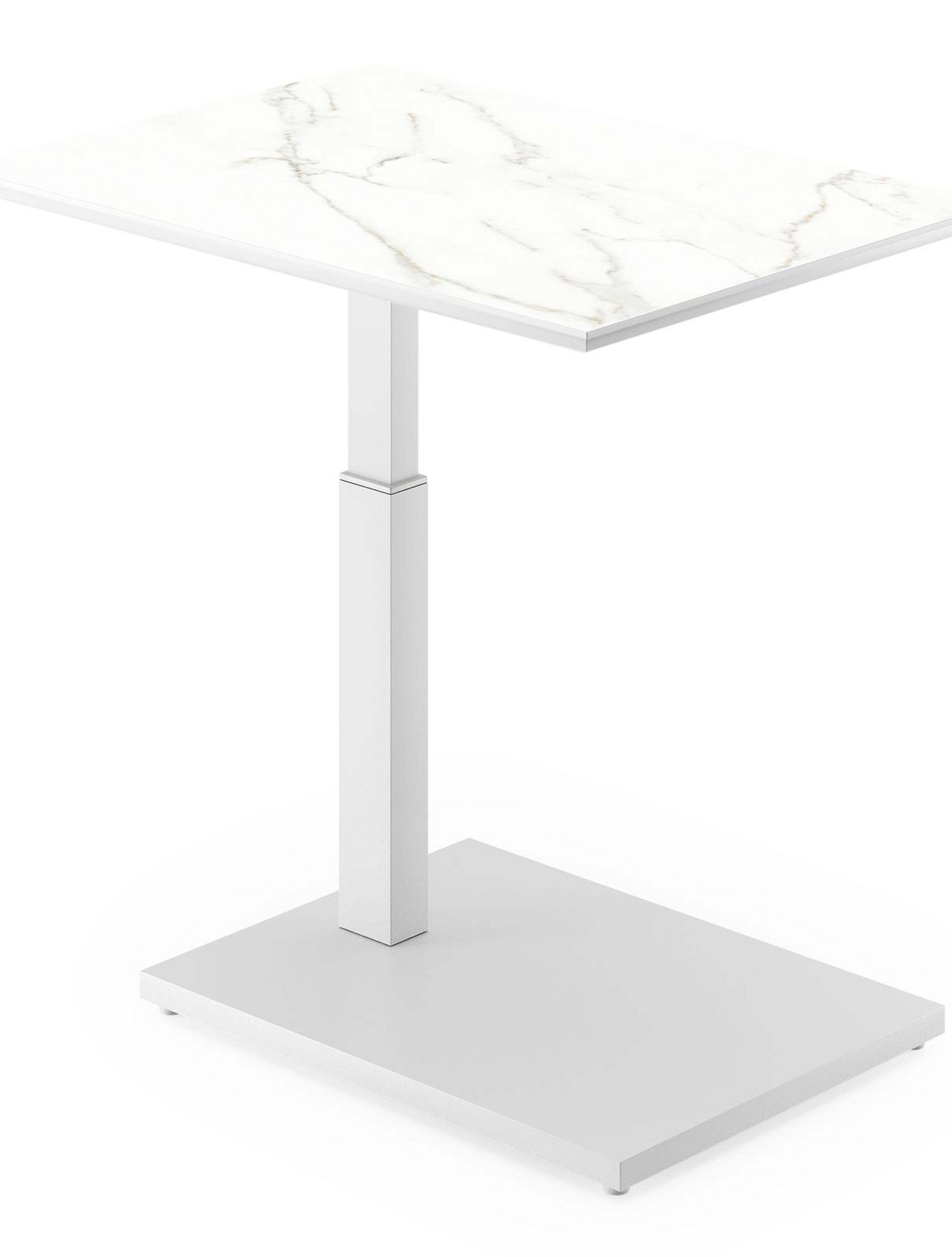 Cirello Pop up bijzettafel in wit aluminium en wit volkeramiek - L 70 x B 50 x H 44/66 cm | Exterioo tuinmeubelen