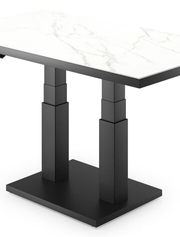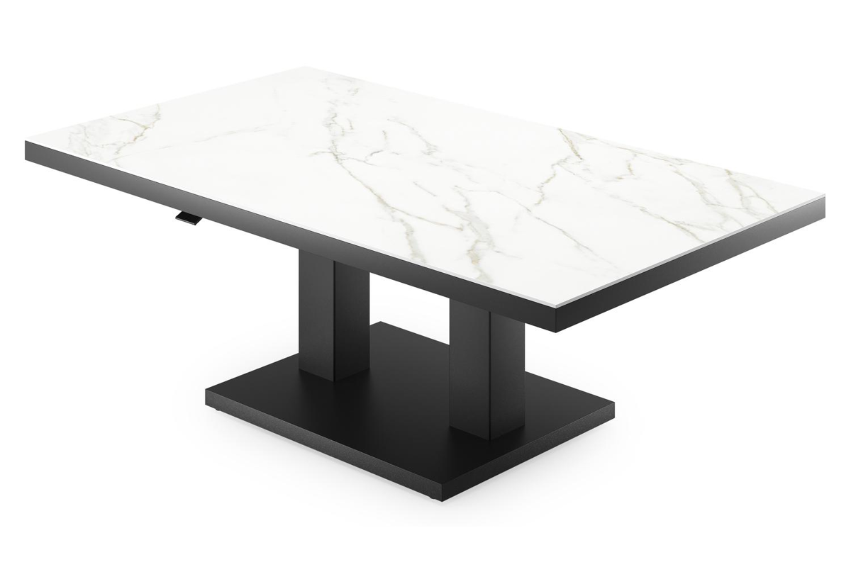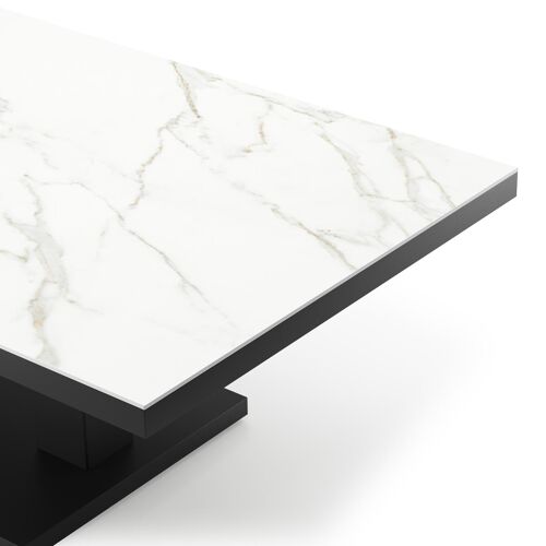 Cirello pop-up loungetafel rechthoekig in zwart aluminium en volkeramiek Calacatta - L 140 x B 80 x H 71 cm | Exterioo