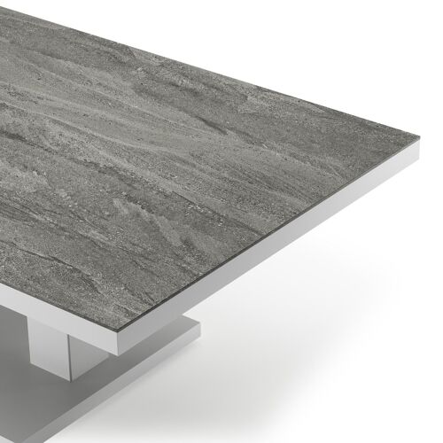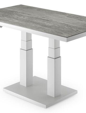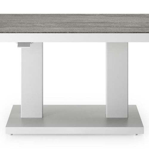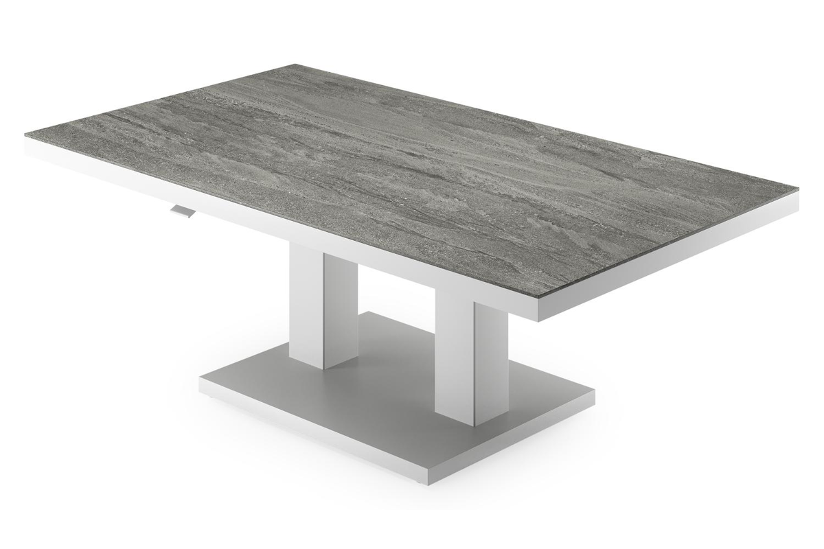 Cirello pop-up loungetafel rechthoekig in wit aluminium en volkeramiek Aspen Grey - L 140 x B 80 x H 71 cm | Exterioo