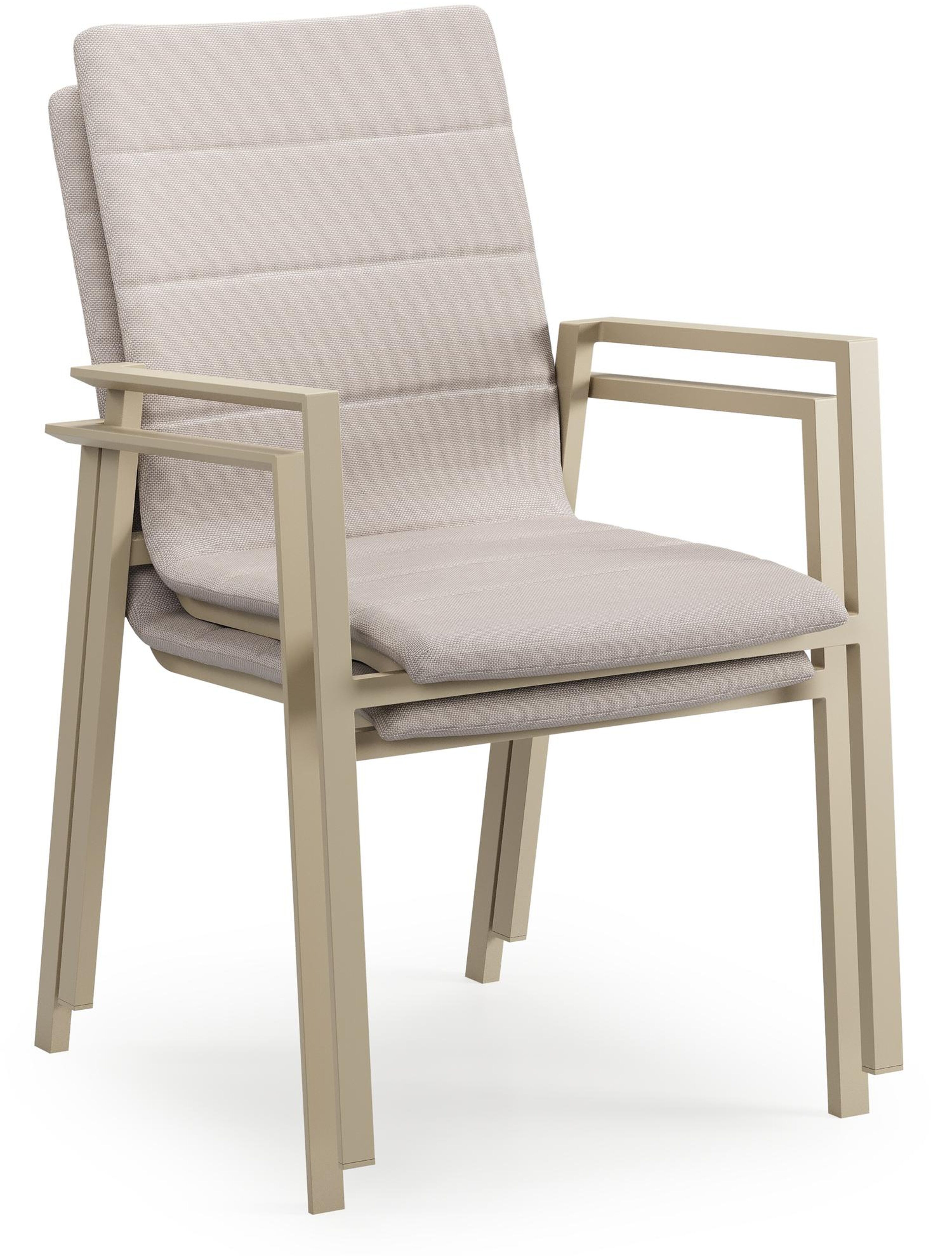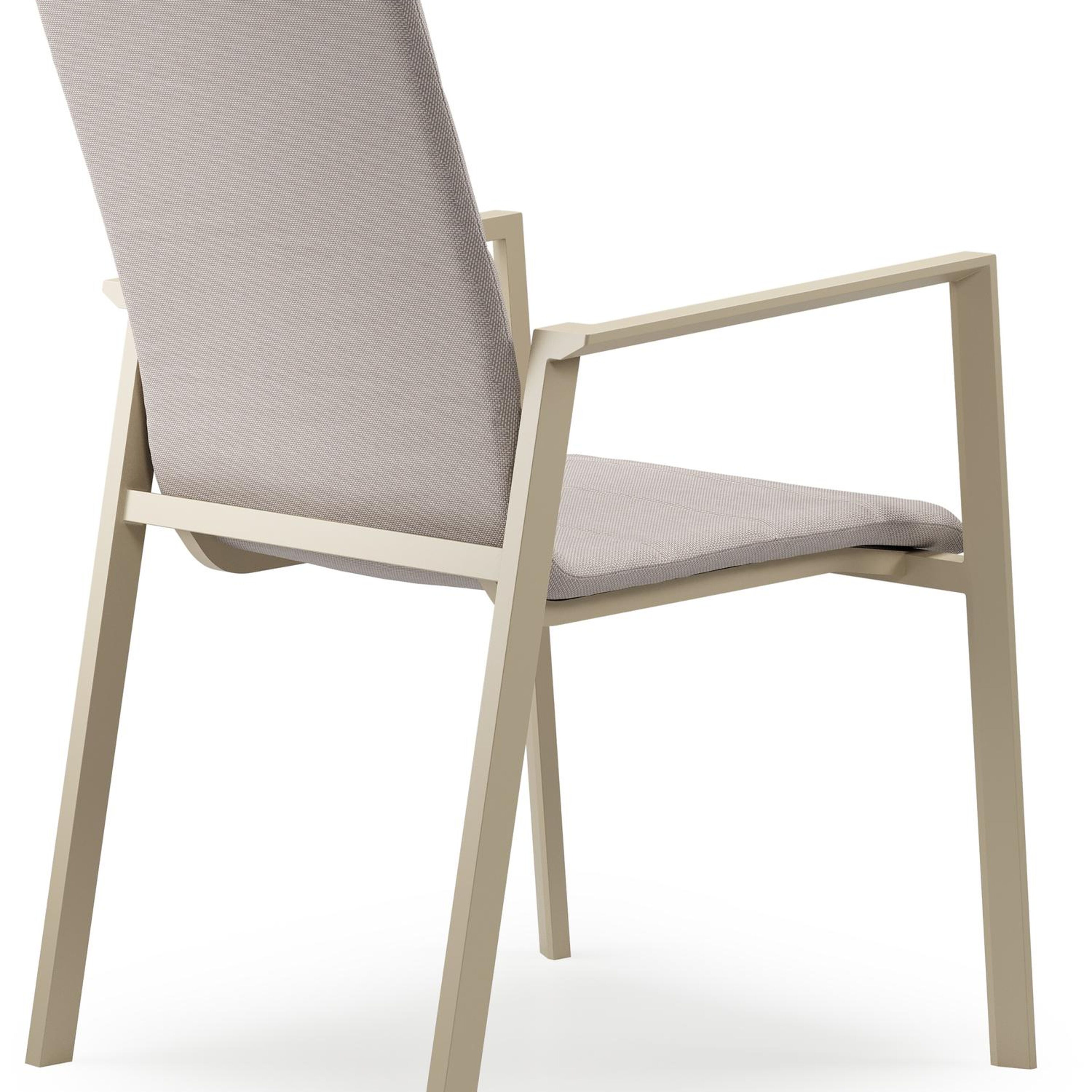 Textilene is een bekleding die bestaat uit polyester draden met een pvc-coating. Textilene is een weerbestendig, vormvast en sneldrogend materiaal. Dankzij de open structuur is het een ademende bekleding en de elasticiteit garandeert een geweldig zitcomfort. De samenstelling maakt het tevens een erg duurzaam materiaal. Luxe textilene omgeeft het zitvlak en de rugleuning om een gedetailleerde afwerking te garanderen. Daarnaast is de afwerking compleet met de elegante siernaden. Tussen de lagen textilene is er een sneldrogende schuimlaag.