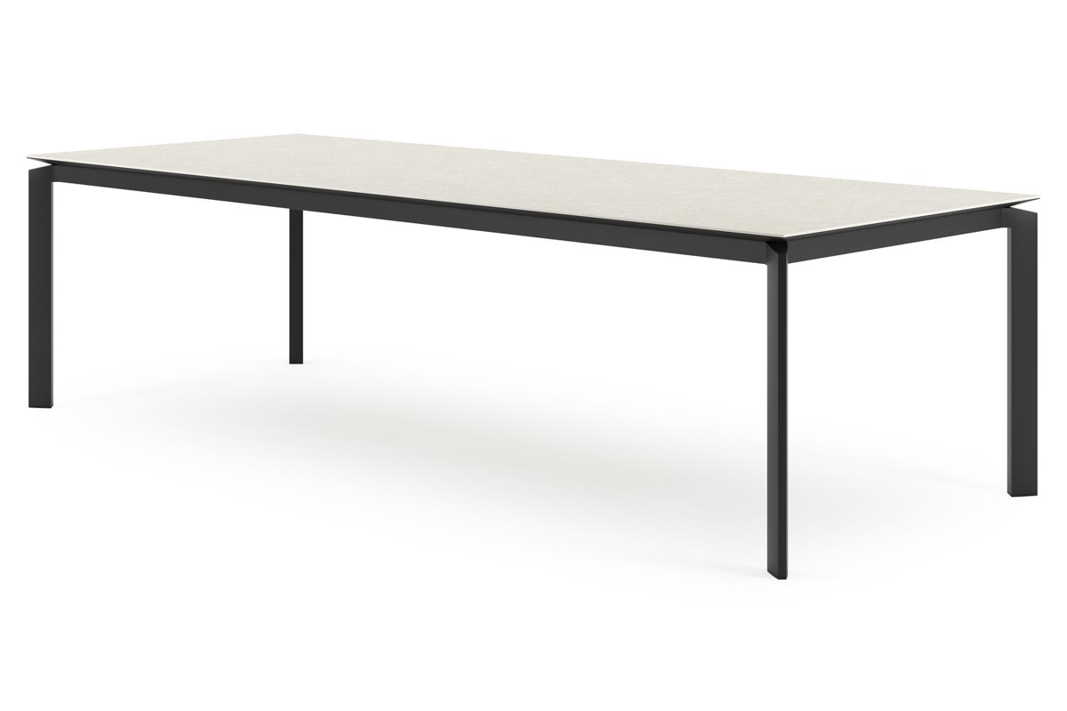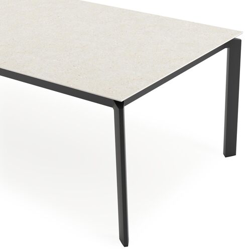 De Cirello tuintafel heeft een modern design. De tafelpoten staan inwaarts gericht naar het middelpunt van de tafel. Bovendien zorgt het frame ervoor dat het tafelblad zweeft boven het frame.