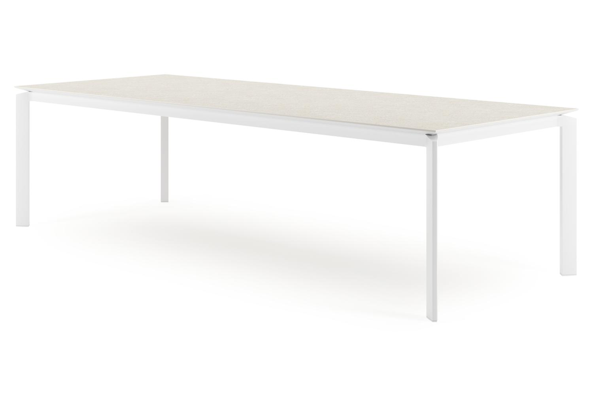 De Cirello tuintafel heeft een modern design. De tafelpoten staan inwaarts gericht naar het middelpunt van de tafel. Bovendien zorgt het frame ervoor dat het tafelblad zweeft boven het frame.